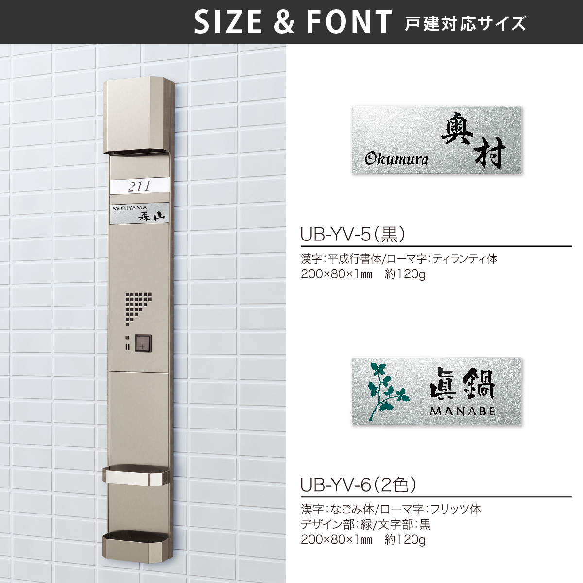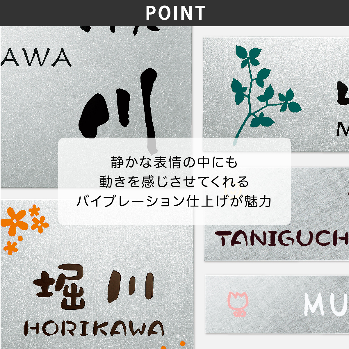 商品詳細 | シンプルなデザインながらも、バイブレーション仕上げのステンレスが動きを感じさせてくれる表札です。別寸サイズでのサイズオーダーも可能です。 |