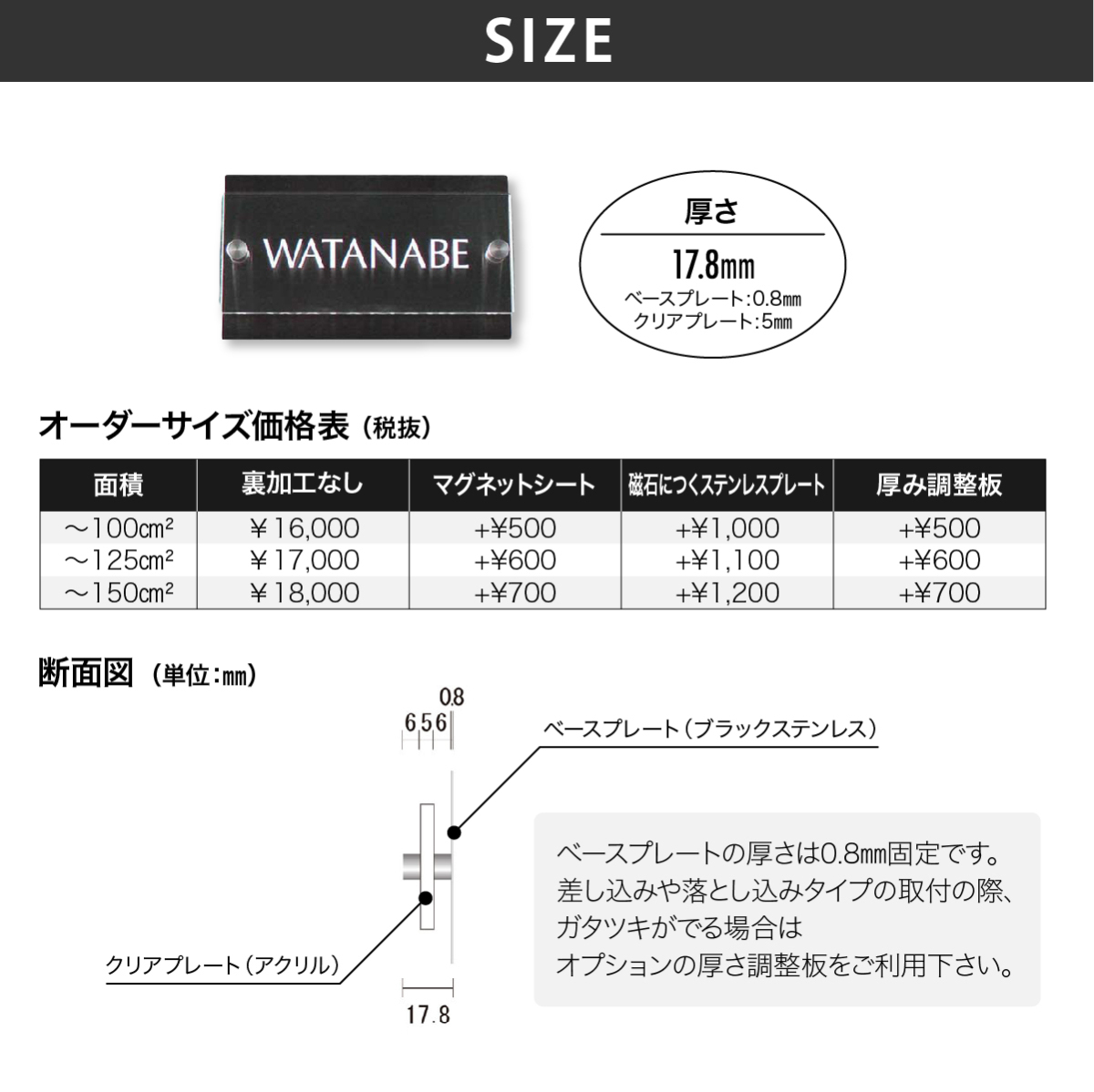 | 商品サイズ | オーダーサイズ 厚さ:17.8mm(ベースプレート:0.8mm、クリアプレート:5mm) |