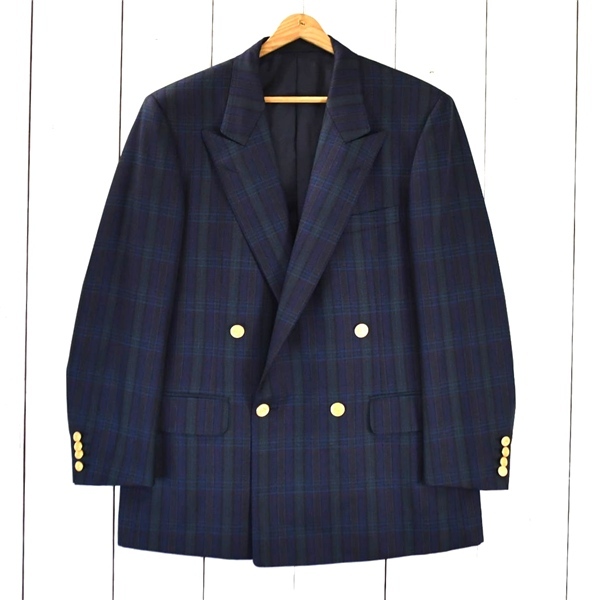 4つボタンダブル。フラップポケット。サイドベンツ。袖口4つボタン。開き見せ。総裏地仕上げ。ネーム刺繍あり。この機会に是非!