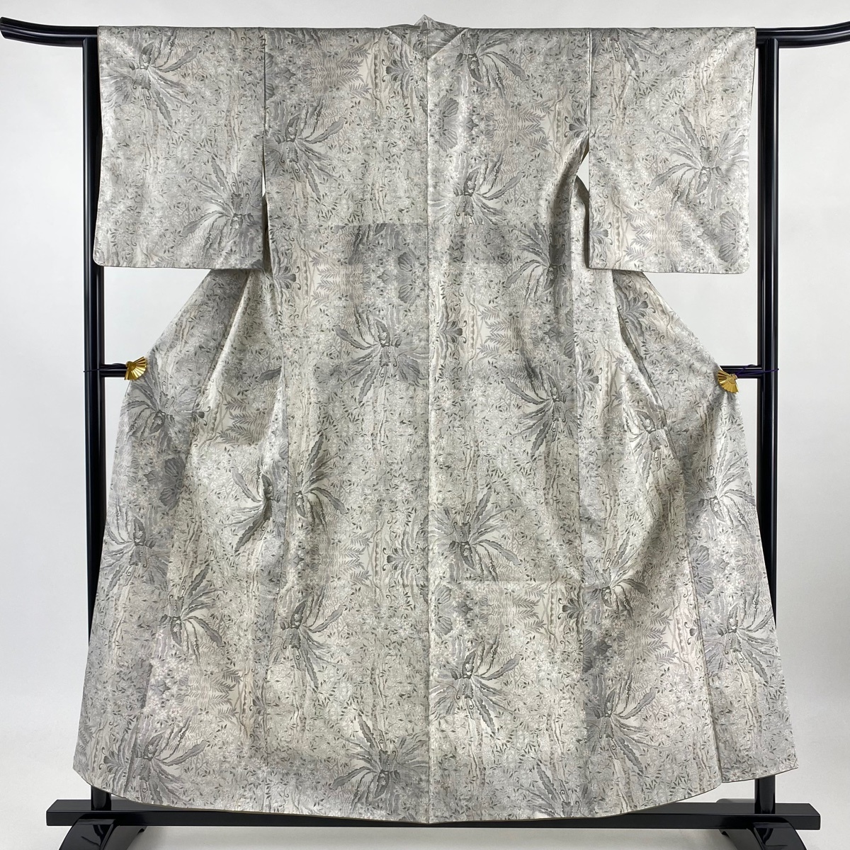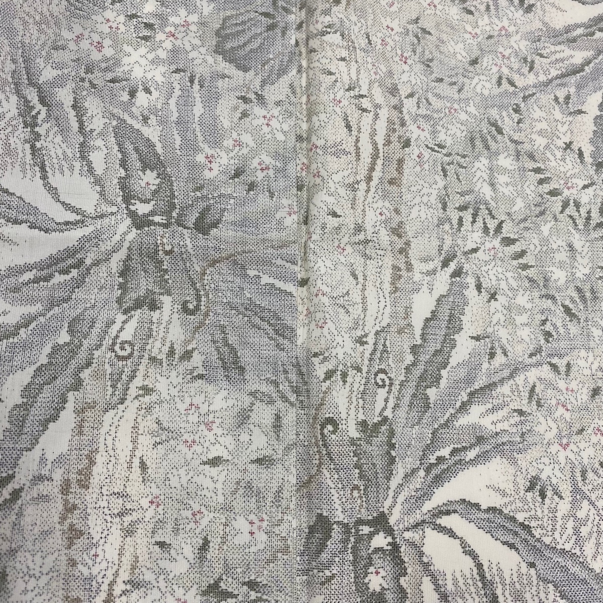 | 紬 美品 名品 草花 灰白 袷 身丈156.5 裄丈63 S 正絹 【中古】 |