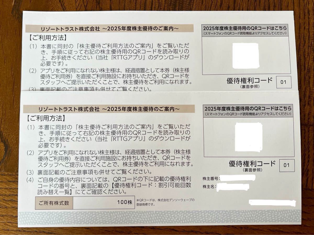 【最新】リゾートトラスト 株主優待 男性名義1枚、女性名義1枚 2枚ペアセット
