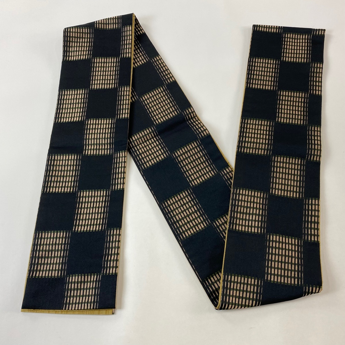 | 半幅帯 美品 優品 市松 格子 黒 化繊 【中古】 |