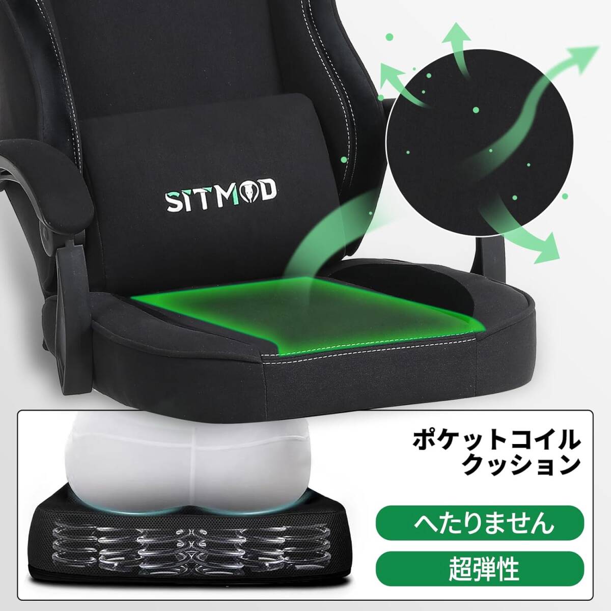 通気性の良いファブリックを使ったゲーミングチェアです。