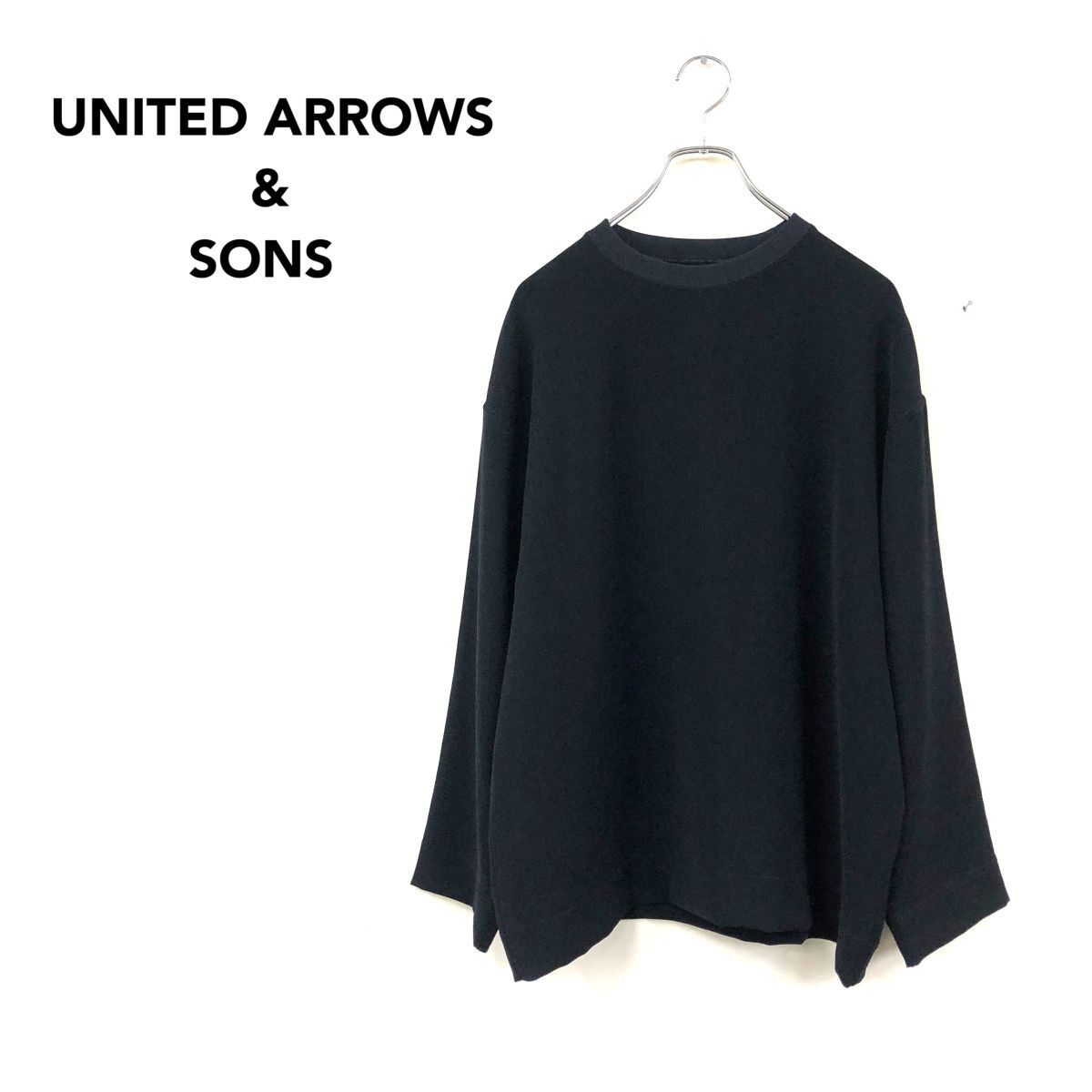 2K1035-G-N◆良品◆ UNITEDARROWS&SONS ユナイテッドアローズ サンズ カットソー リブクルーネック 長袖 無地 ◆ sizeS 黒 ポリエステル