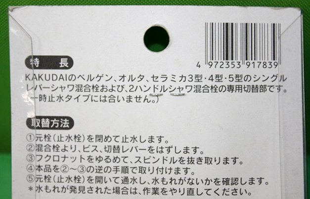未使用 3個セット カクダイ 9178C 混合栓切替部 シングルシャワー ベルゲン オルタ セラミカ KAKUDAI