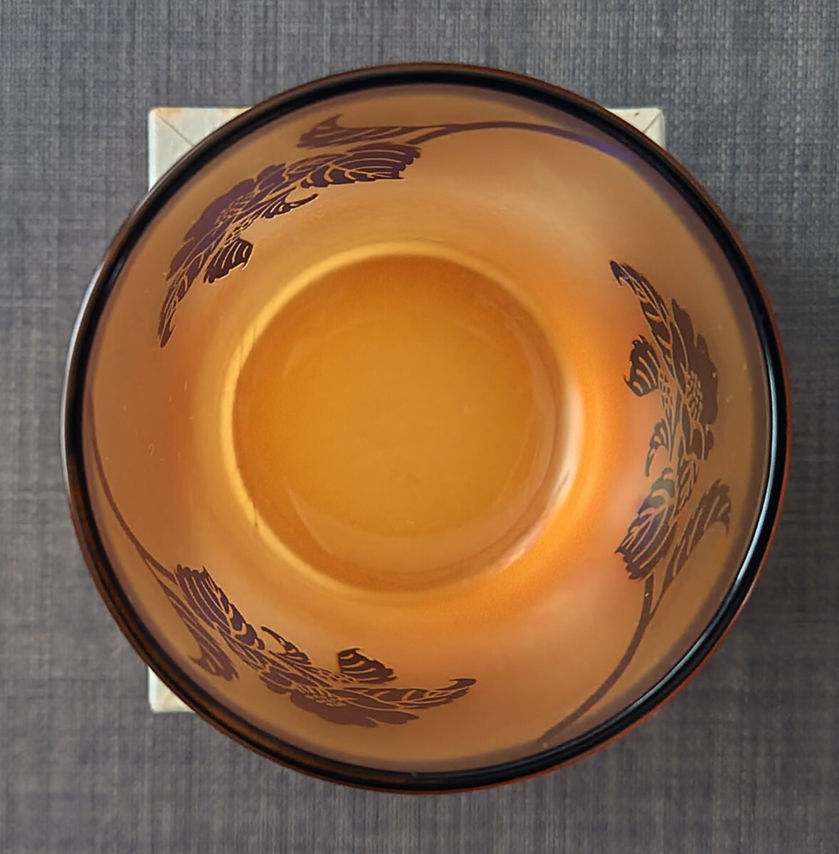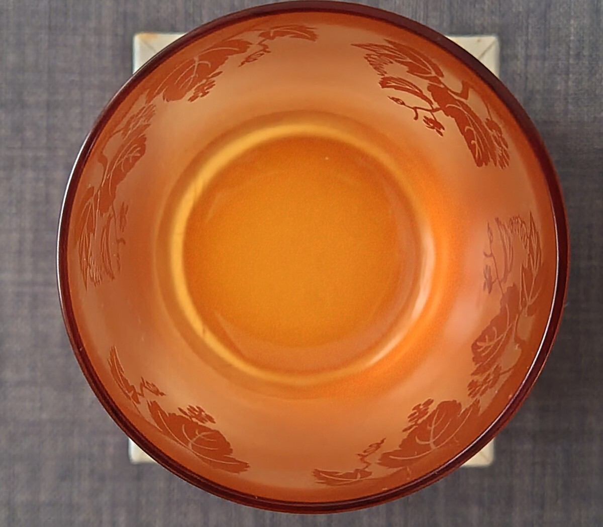 ・ 商品名 彫刻 夢柄子 オールドグラス 2個セット(つばき_ブルー系アンバー/ぶどう レッド系アンバー)