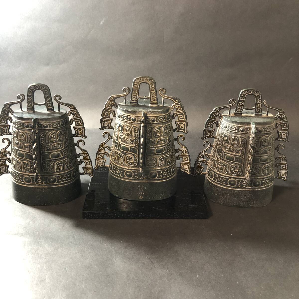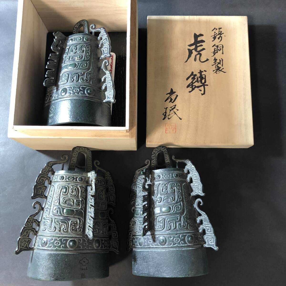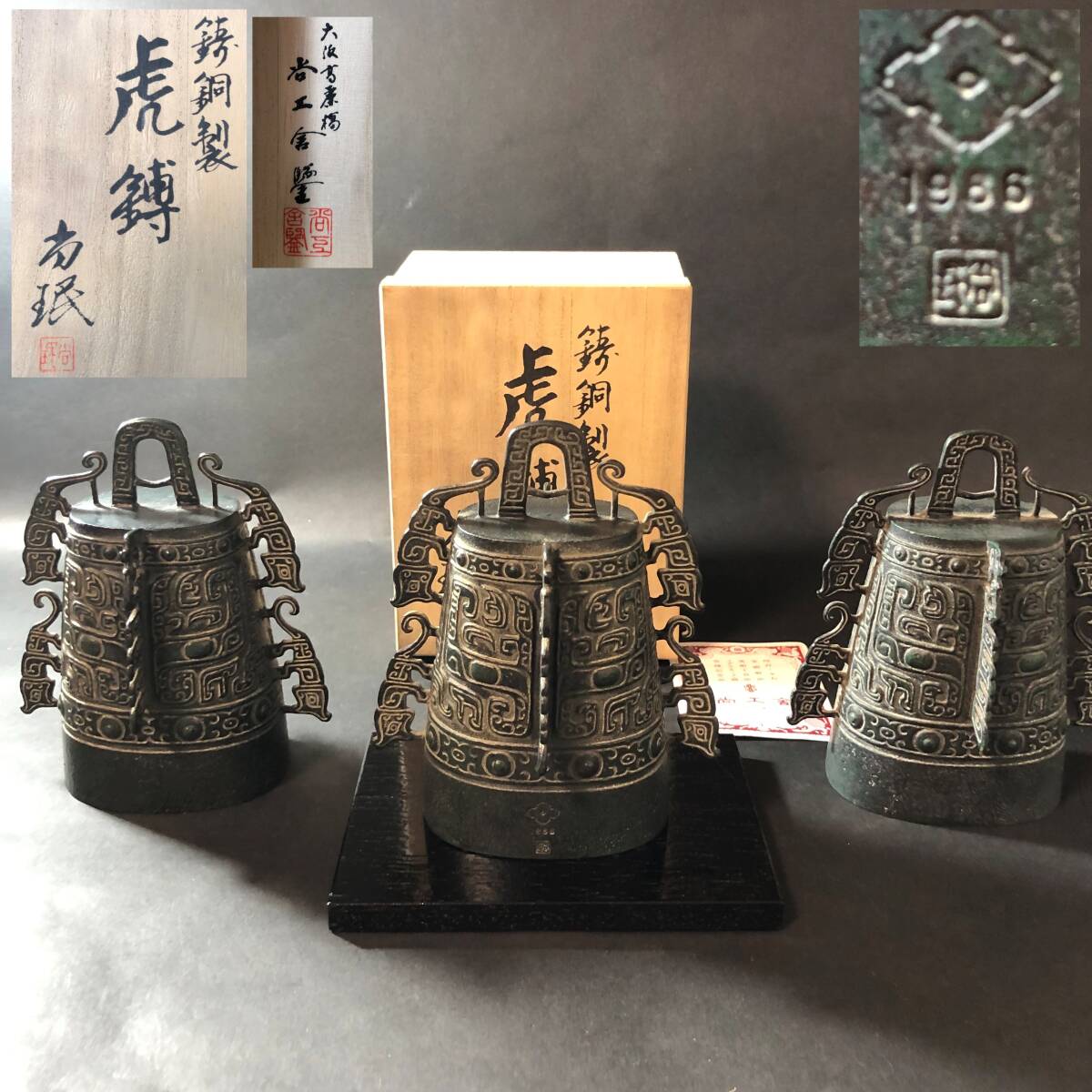 鋳銅 伝統工芸 金属工芸 小林尚珉 虎縛 こはく 共箱 合計3個 箱無し2個 銅鐸写し 飾り物 置物