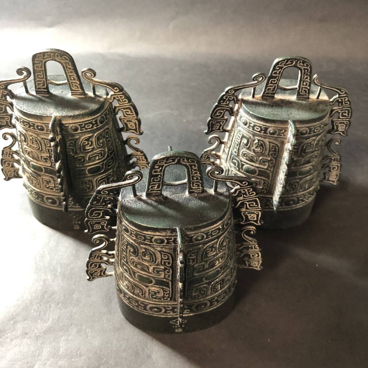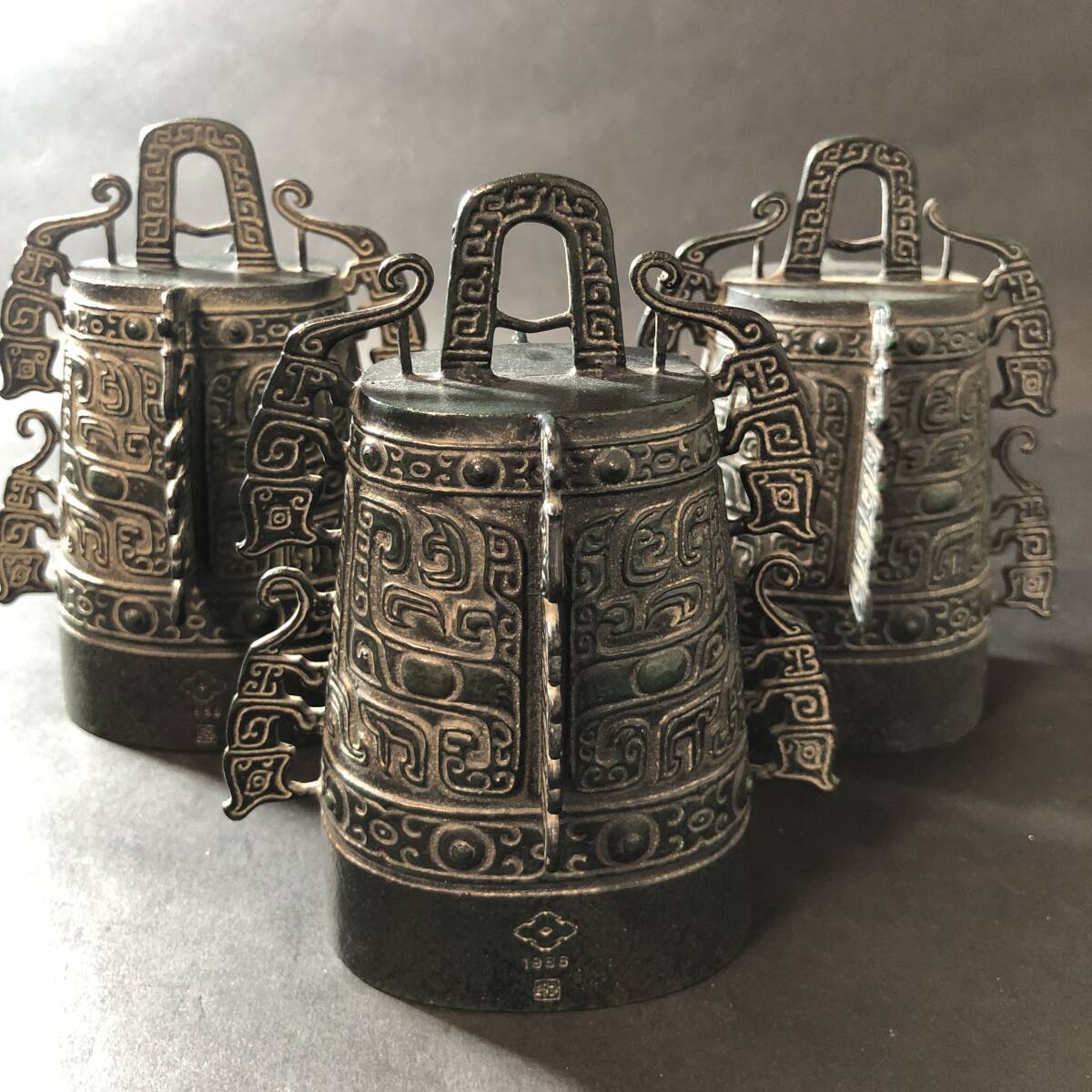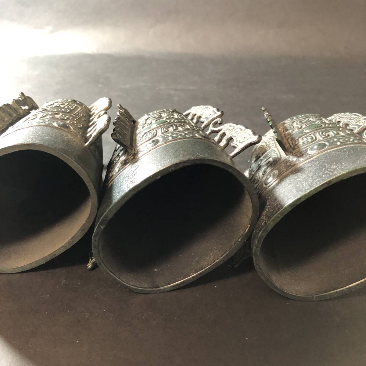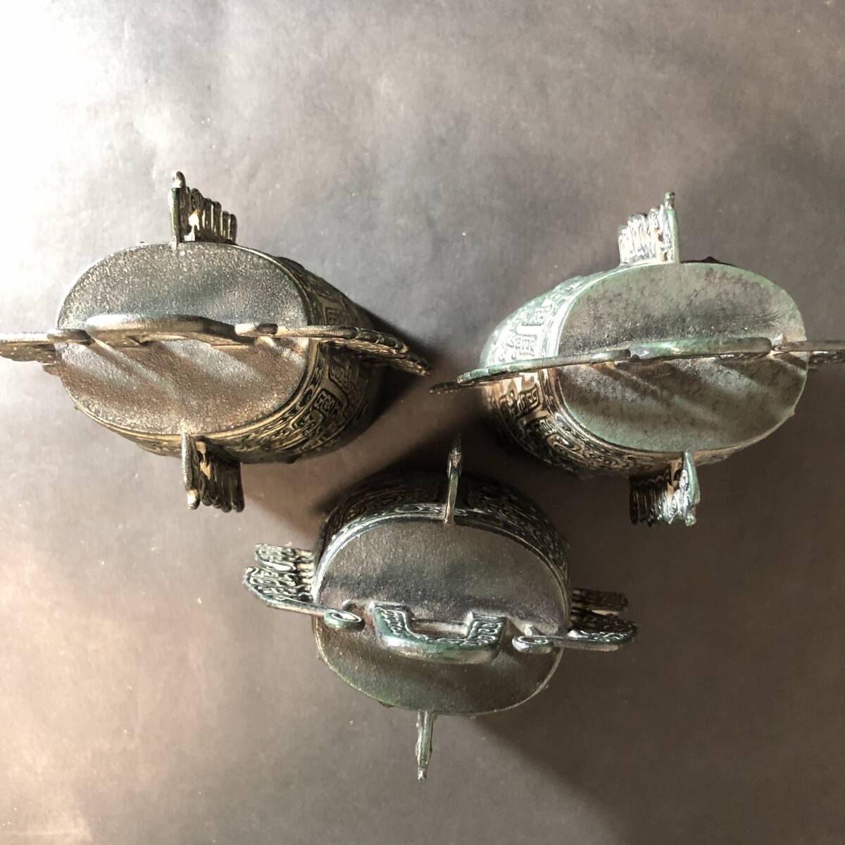 鋳銅 伝統工芸 金属工芸 小林尚珉 虎縛 こはく 共箱 合計3個 箱無し2個 銅鐸写し 飾り物 置物