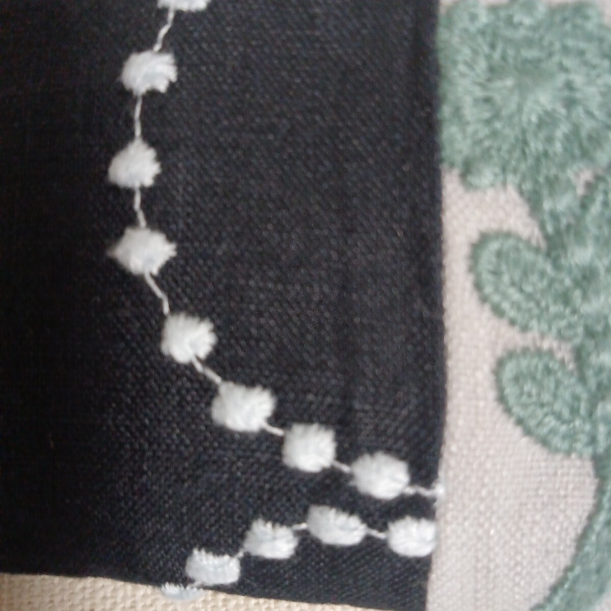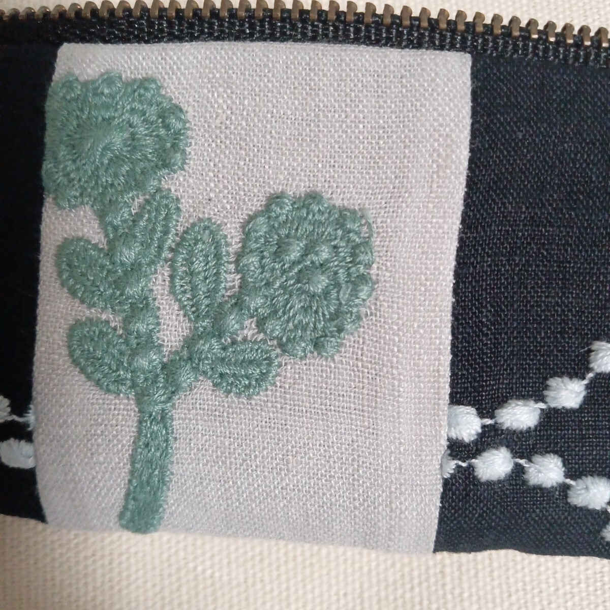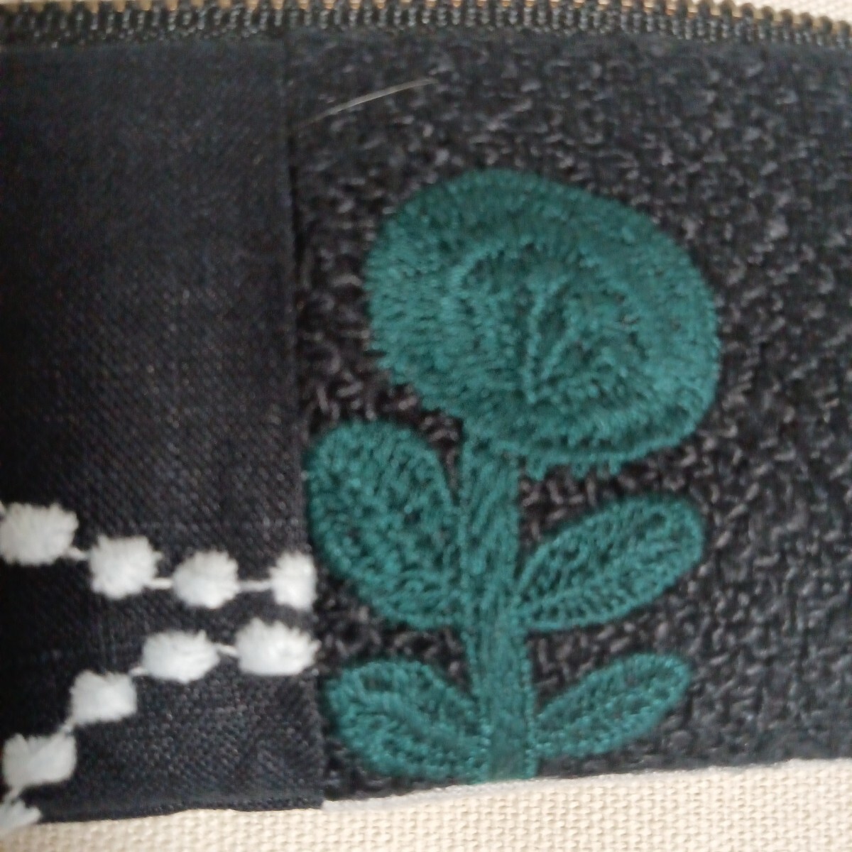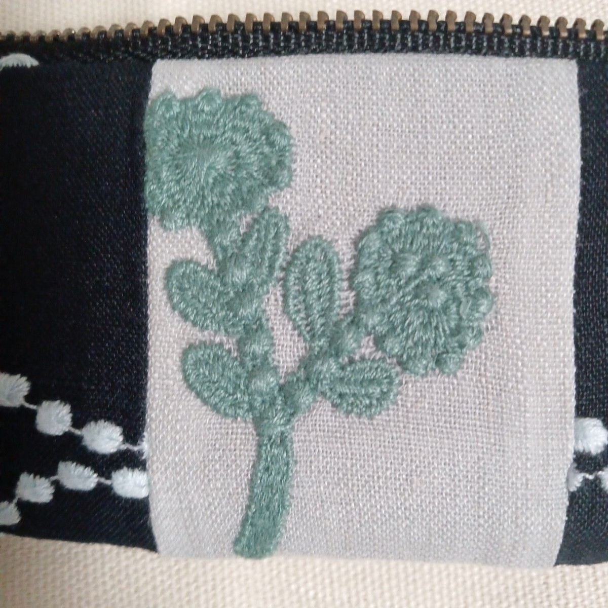 ミナ・ペルホネンハギレ タンバリンとボヌールのハギレをステッチしております。