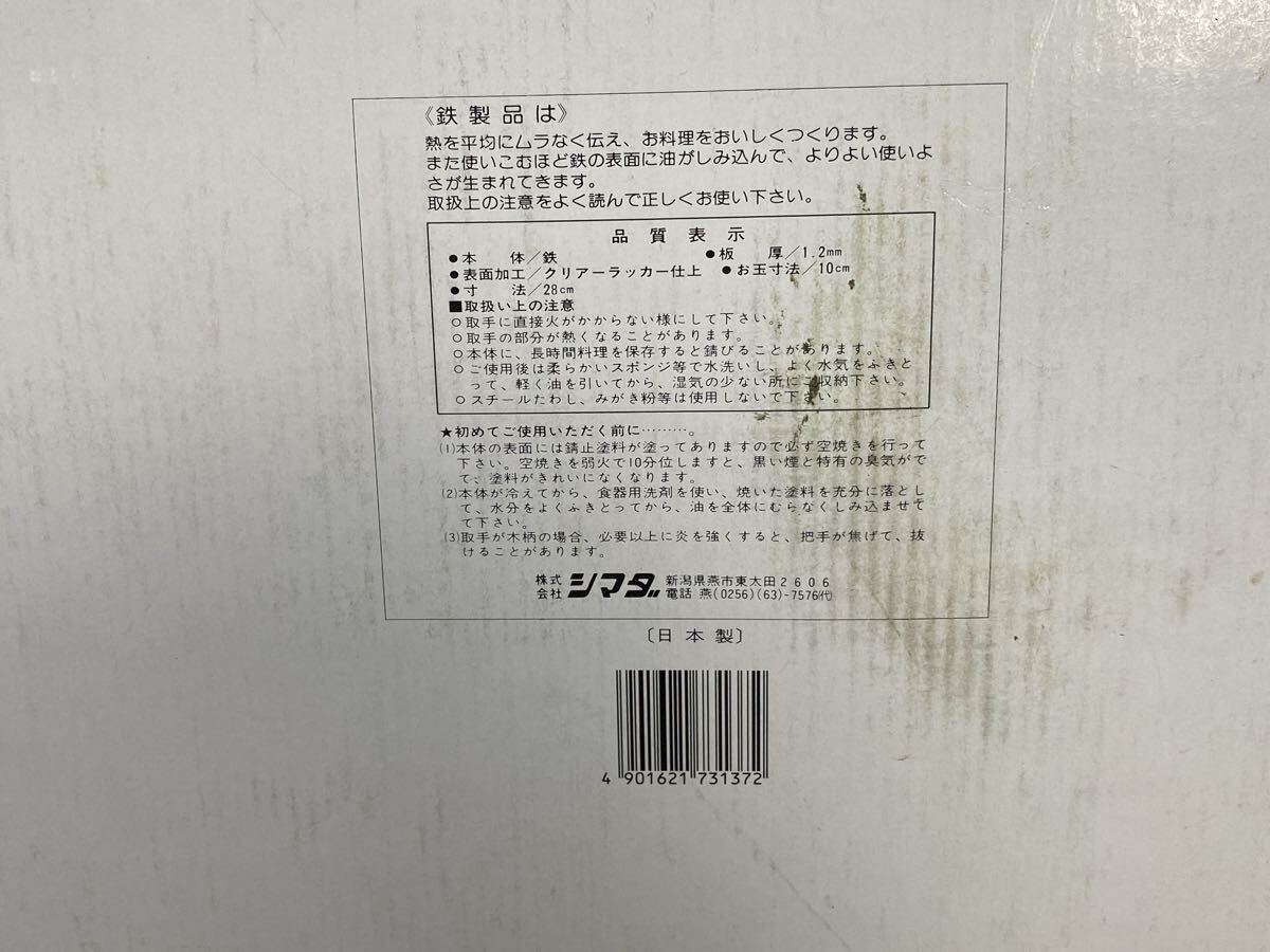 ♪商品説明♪ | v(^_^v)♪当オークションをご覧頂き、有難うございます~♪(v^_^)v ☆日本製 中華鍋 いため鍋 28cm お玉付き チャーハン キャンプ アウトドア☆ 未使用保管品です。 箱に色あせや痛みございます。 本体にも保管時の擦れなどございます。 28cm有りますので、チャーハンなどは作りやすいと思います。 アウトドアでのご使用も面白いと思います。 現状お渡し品となりますのでご了承ください。 よろしくお願いいたします。 | |