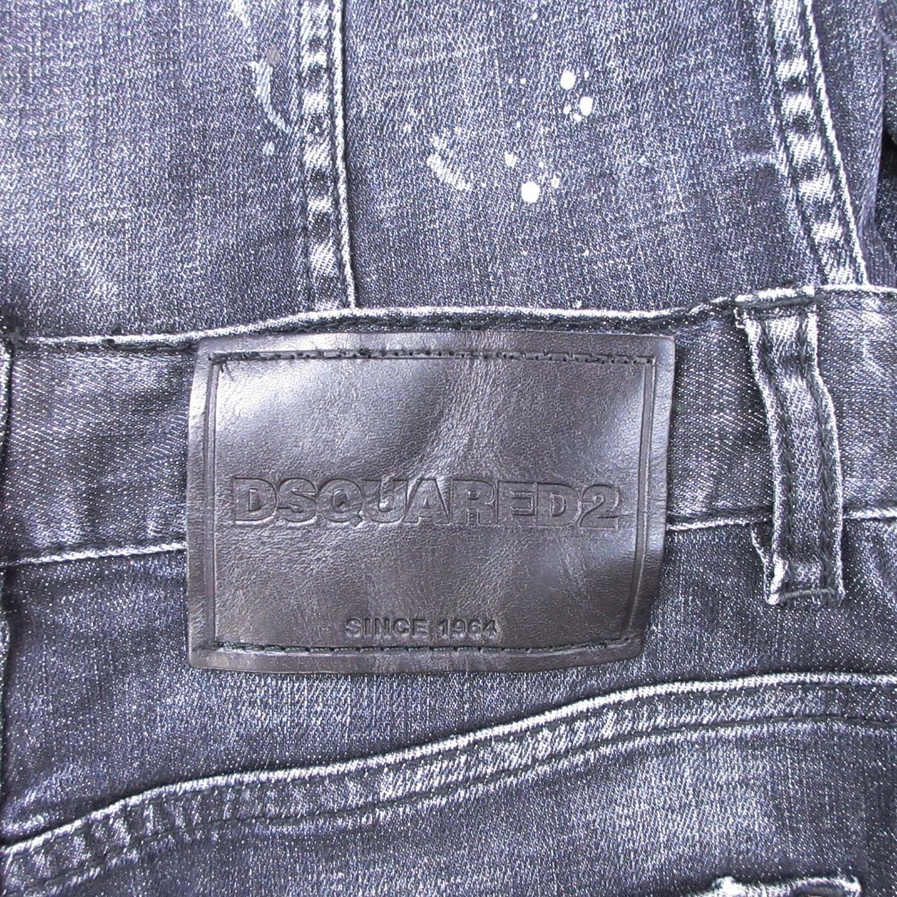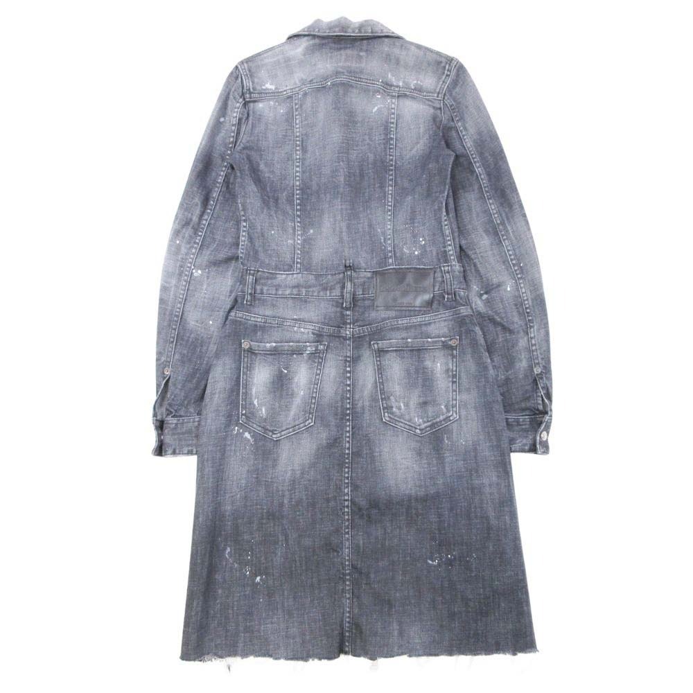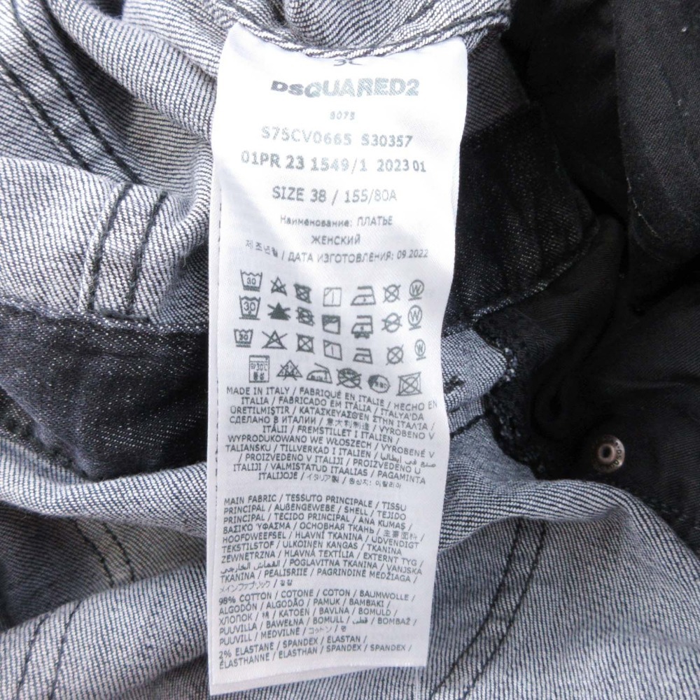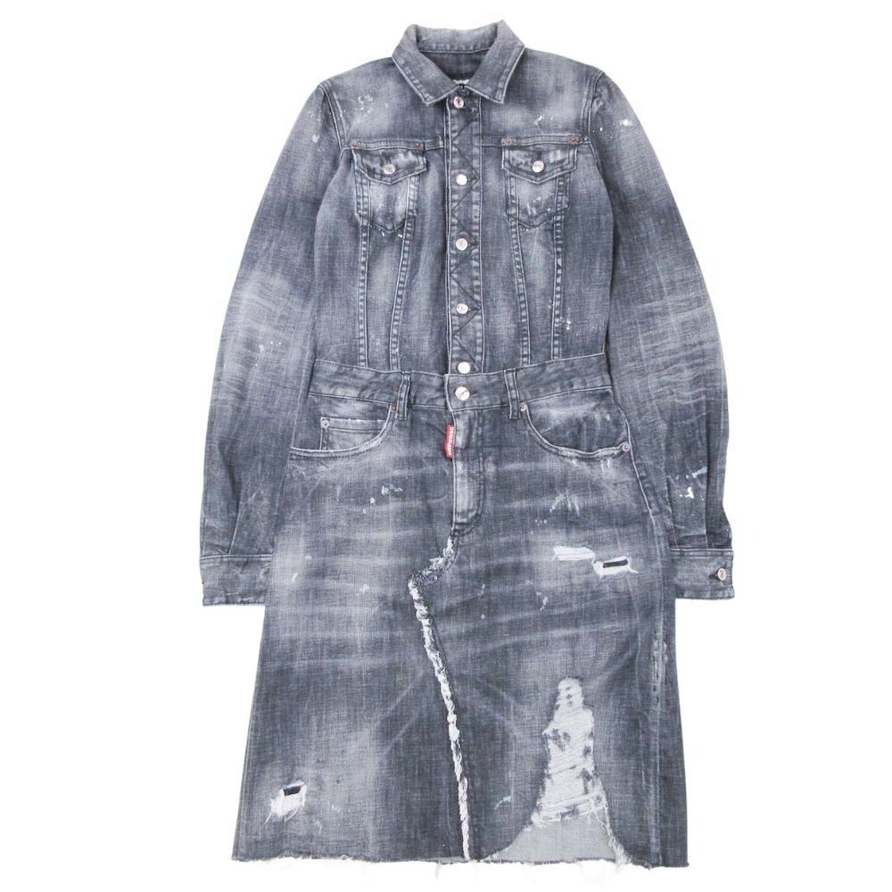 商品名:23ss DSQUARED2 ディースクエアード ダメージ加工 ストレッチ デニム ワンピース ペイント加工 ひざ丈 38 黒 ブラック