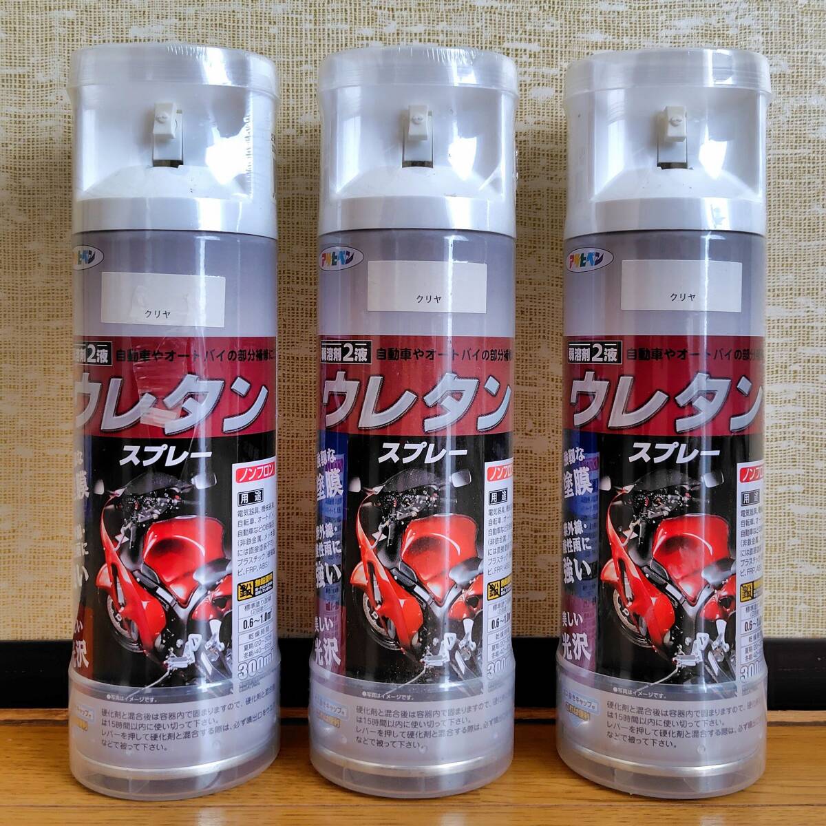アサヒペン 2液 ウレタンスプレー クリヤ 300ml 3本 弱溶剤型 塗料 塗装 DIY 屋内外 多用途 ツヤあり