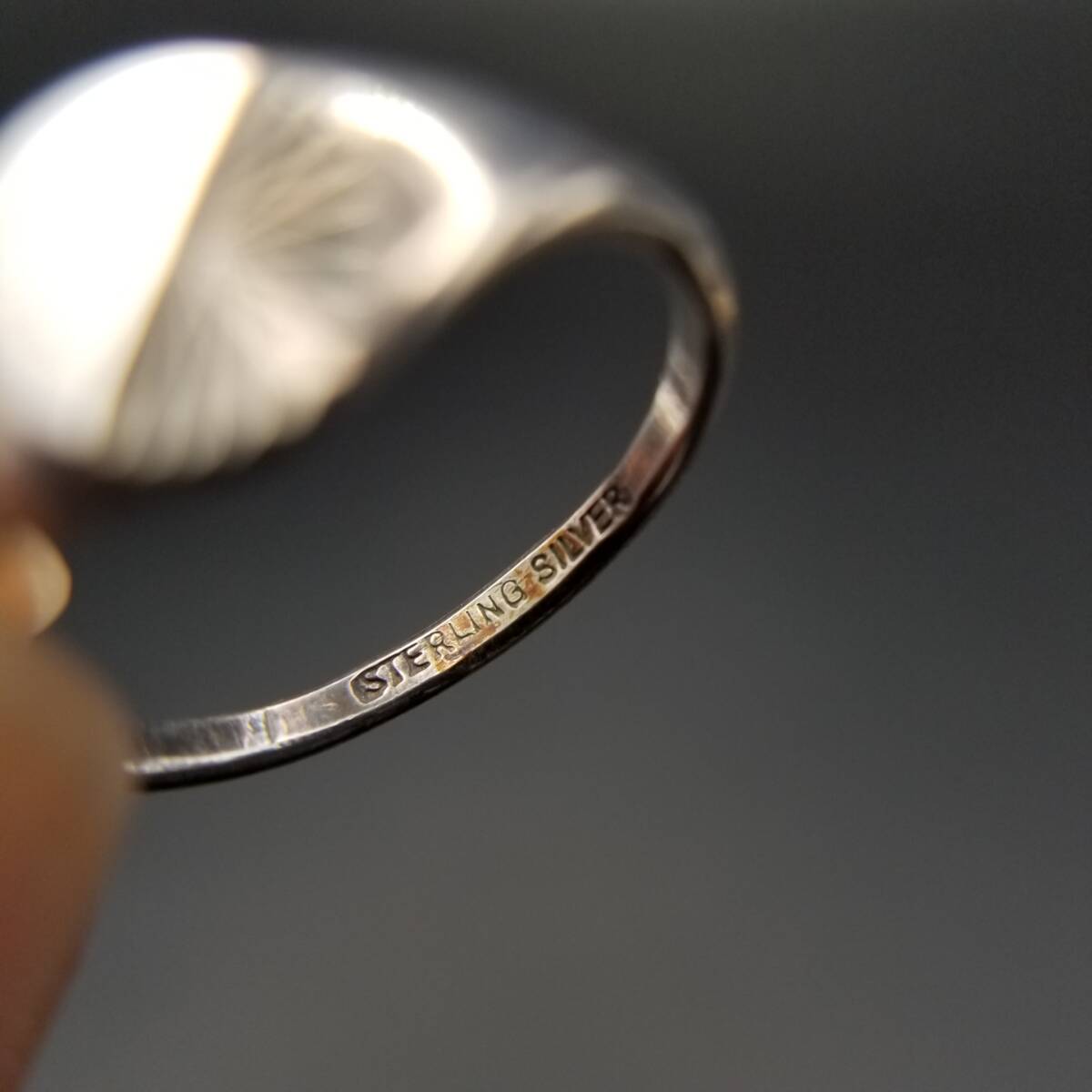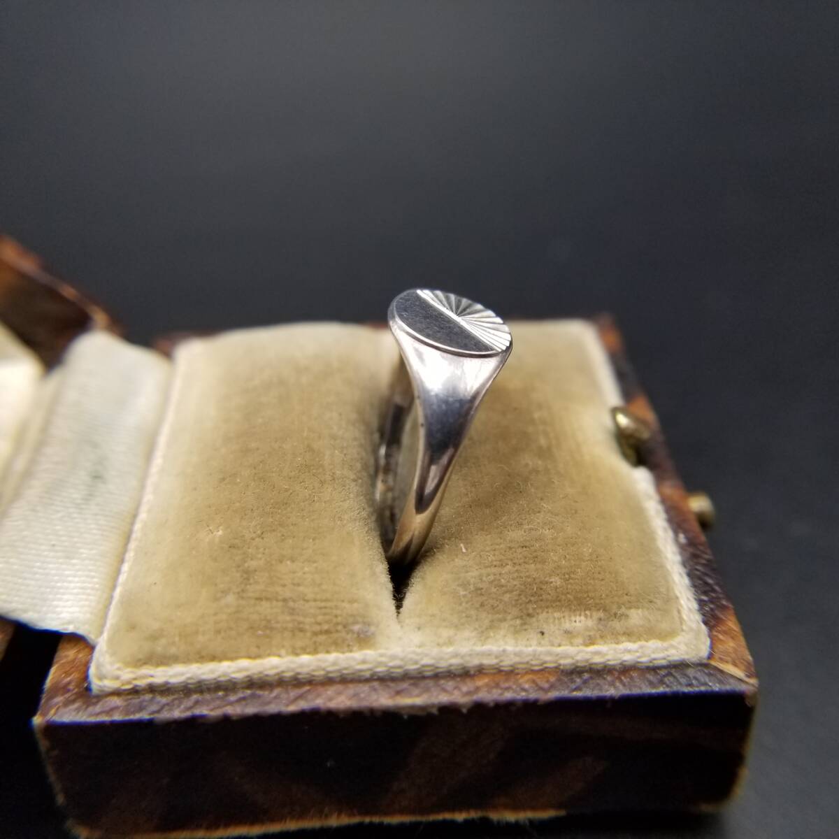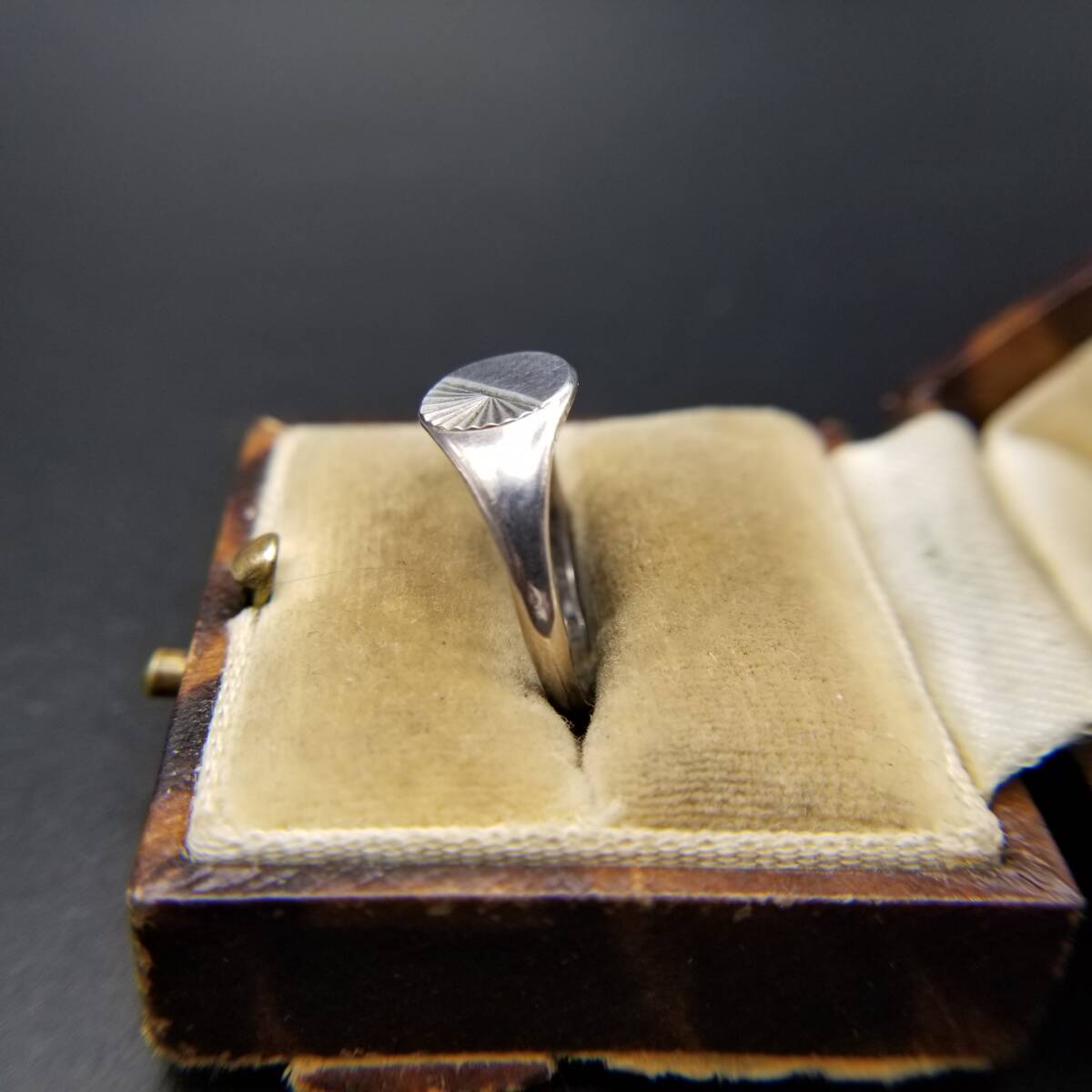 放射状線 スラッシュカット オーバル 925 シルバー ヴィンテージ シグネット リング 銀 指輪 小ぶりトップ ミニマム Y24-L