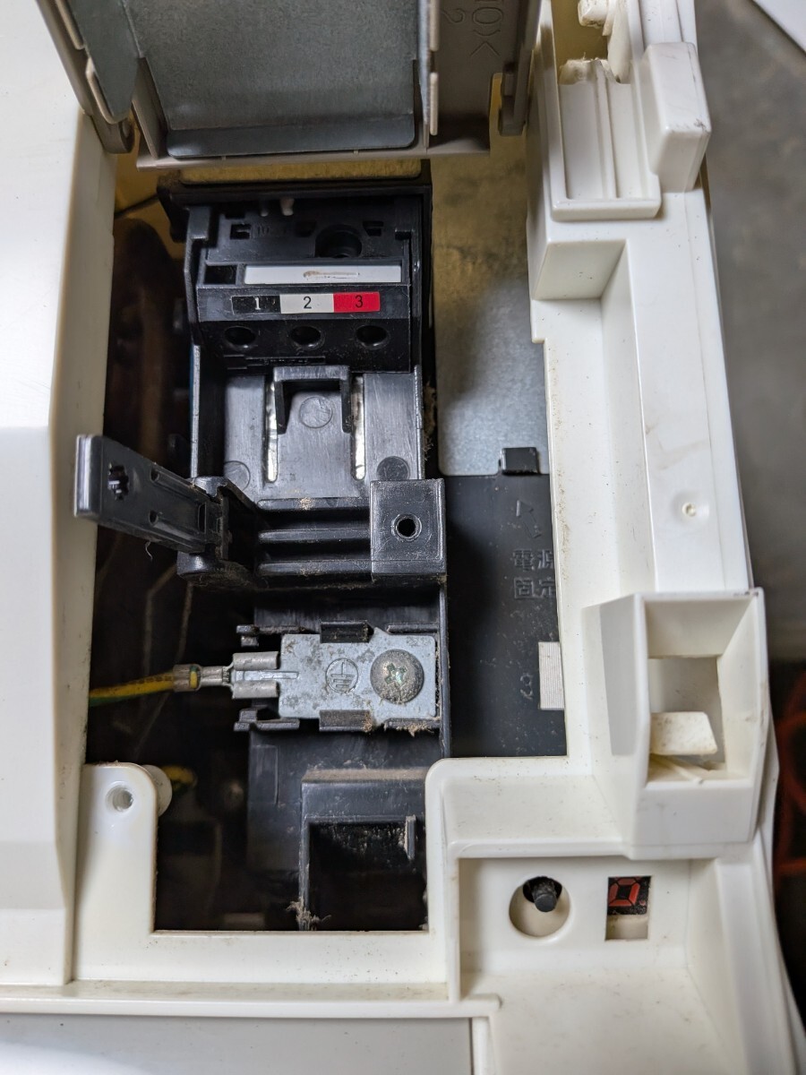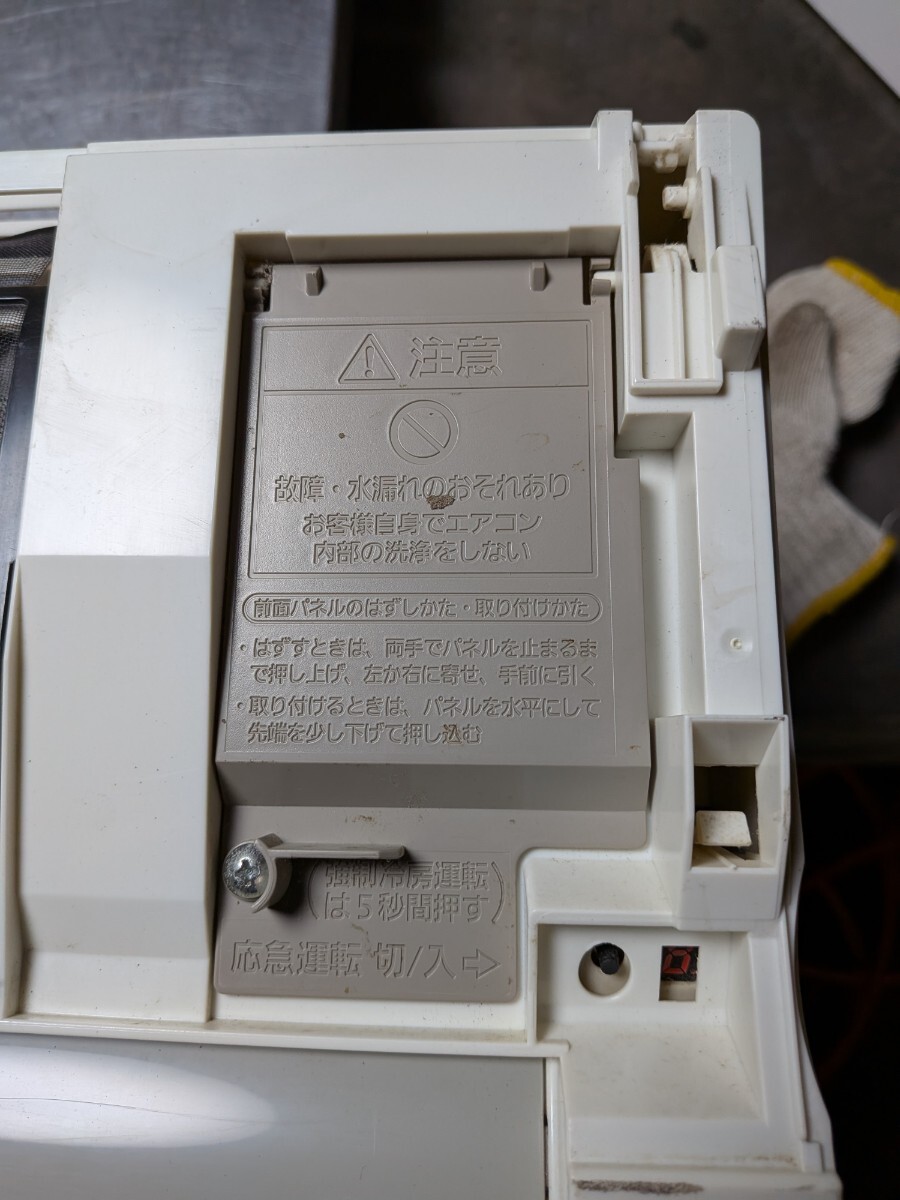 前面パネルの引っ掛けが割れている為上に上げると取れます