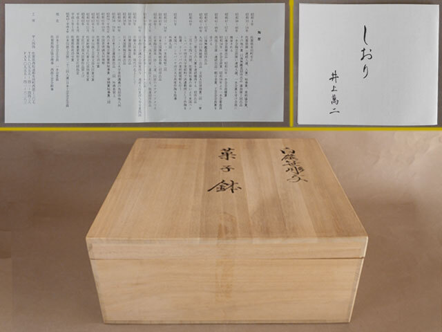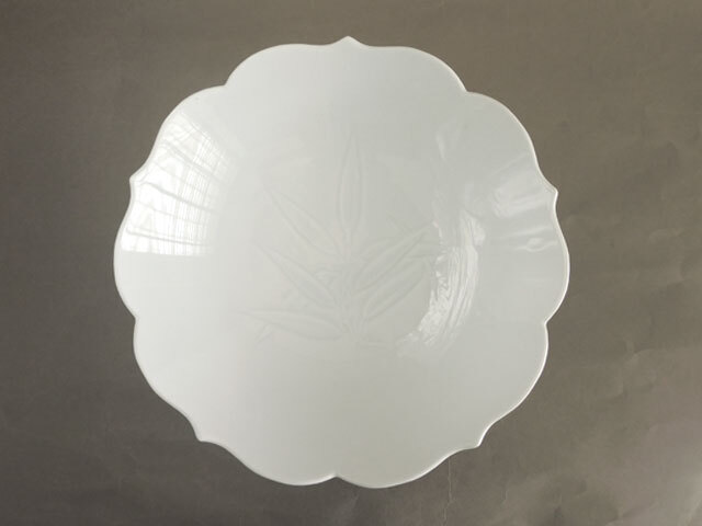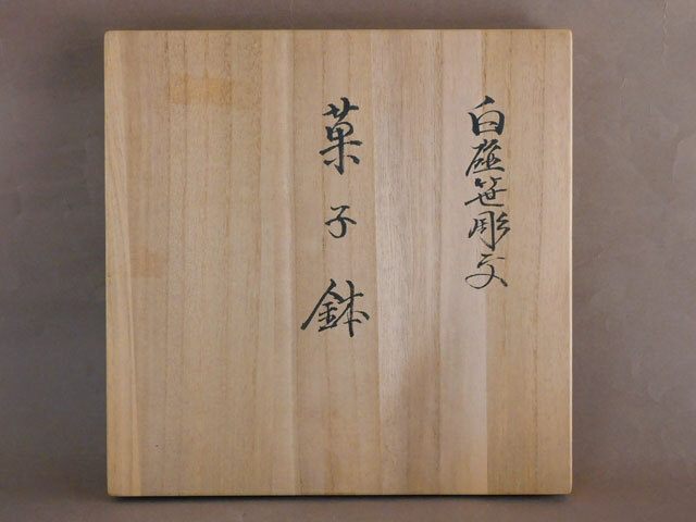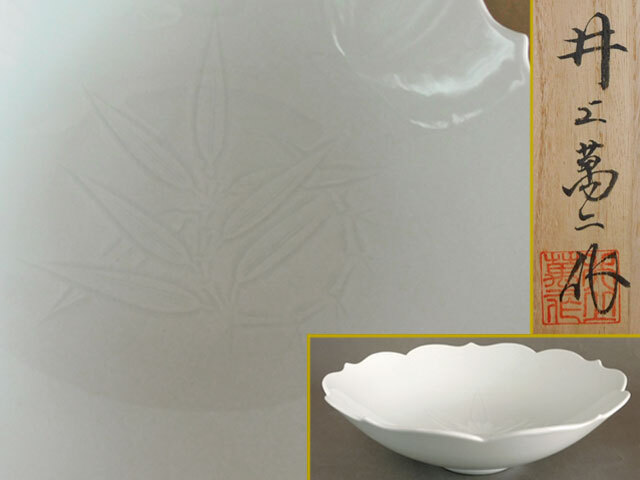 人間国宝 井上 萬二 白磁 笹彫文 菓子鉢 本人作