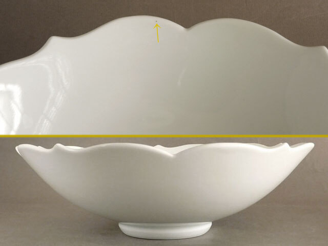 フチに一カ所、色が釉薬の中に入り込んでいますが元からのもので、小さく目立ちません(写真参照)