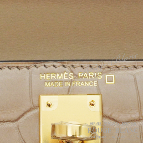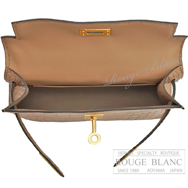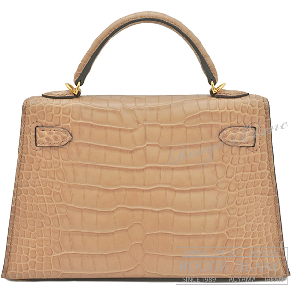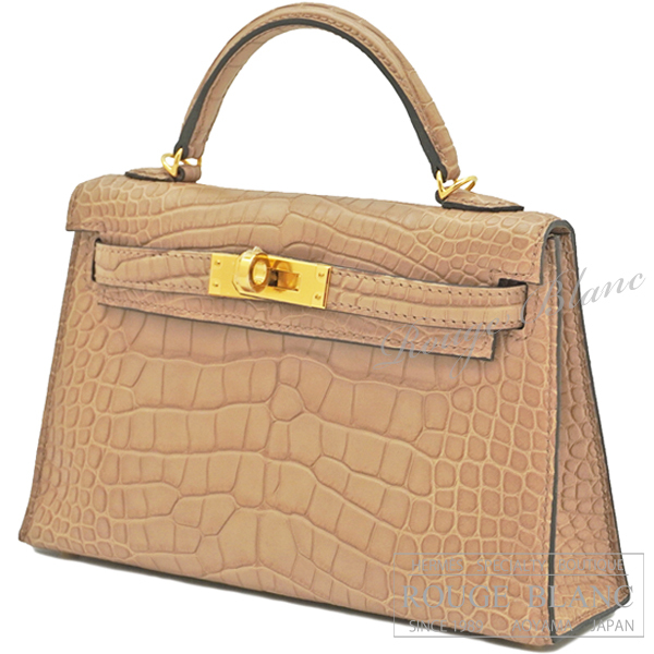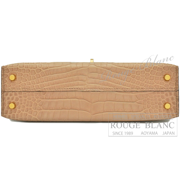 新品 エルメス ケリーミニ 2/ミニケリー 2 チャイ クロコダイル アリゲーターマット ゴールド金具 HERMES バッグ ベージュ