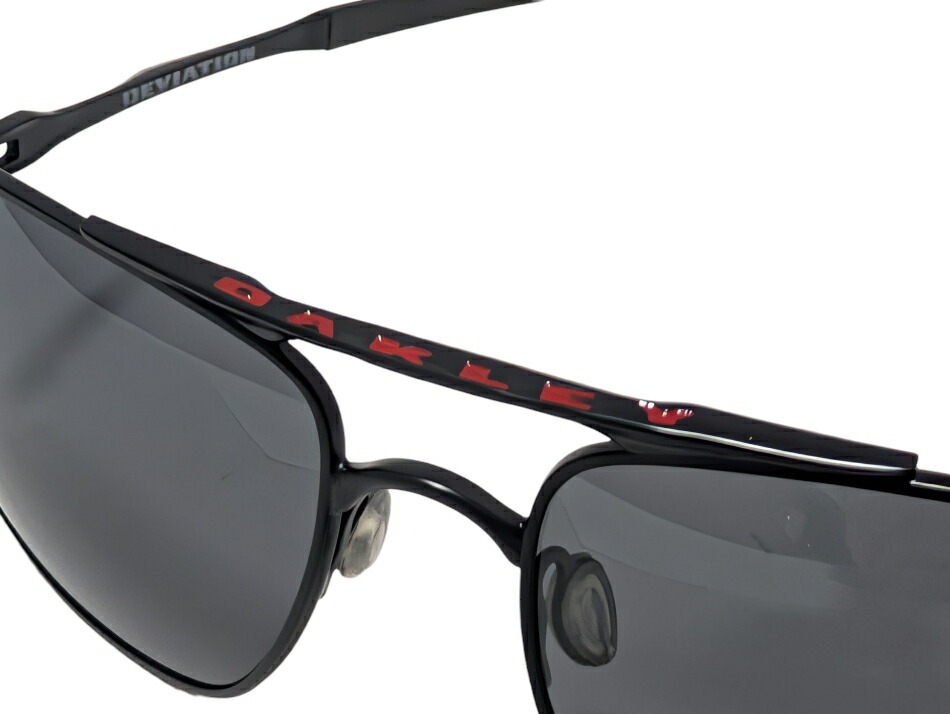 コメント・・・オークリーのサングラス『デビエーション』の入荷になります☆マットブラックのメタルフレーム×赤いロゴの組み合わせの重厚なイメージのサングラスになります♪偏光レンズ仕様で男女を問わず着用いただけるサングラスです◎