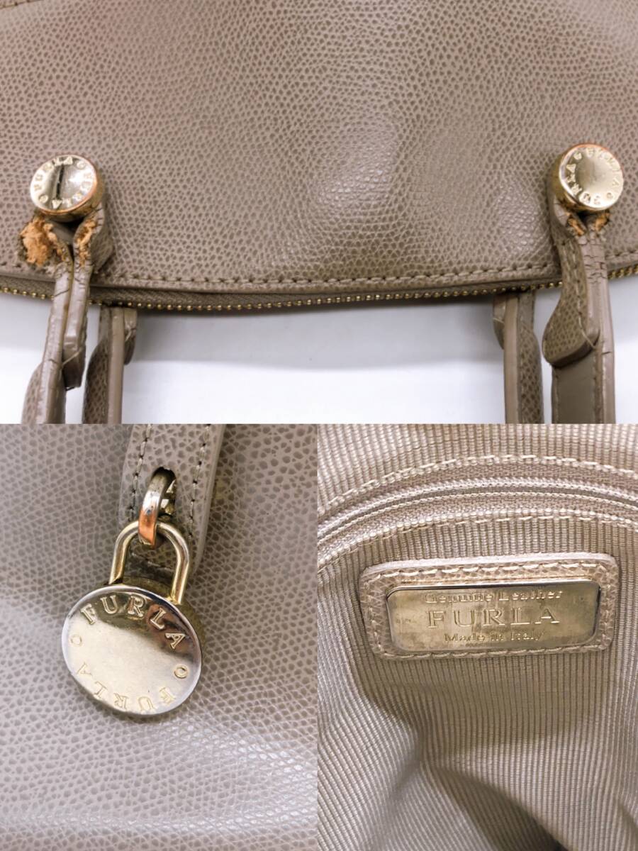 【27462】FURLA フルラ レザー 2WAY トートバッグ グレージュ トートバッグ ハンドバッグ ショルダーバック バック 手持ち シンプル