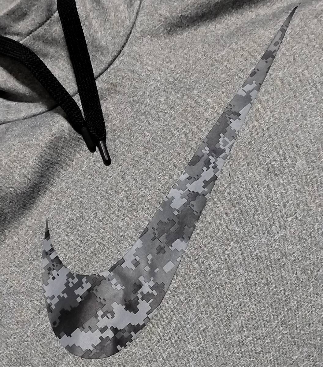 胸元のデジタルカモフラ柄スウッシュロゴがポイント。