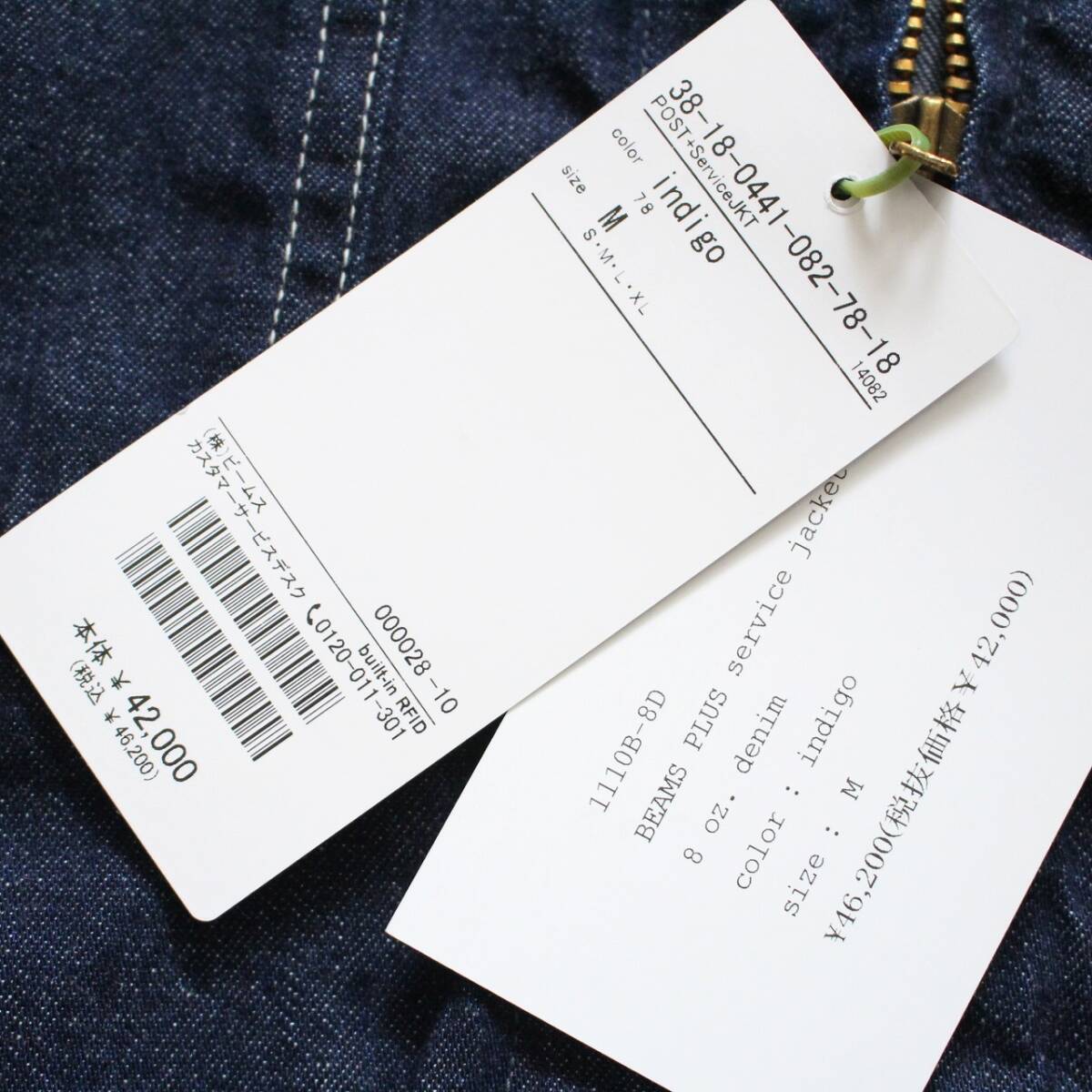 未使用【 ポストオーバーオールズ × ビームスプラス 】別注 Service Jacket デニム サービス ジャケット M 定価¥46,200 濃紺 ブルゾン