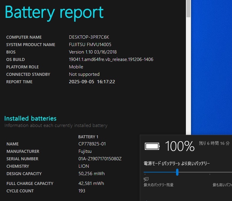 バッテリー 満タン後最大残量(実際の稼働を保証するものではありません)