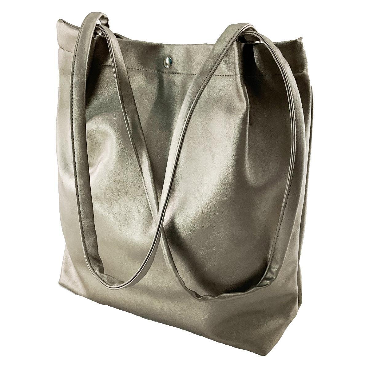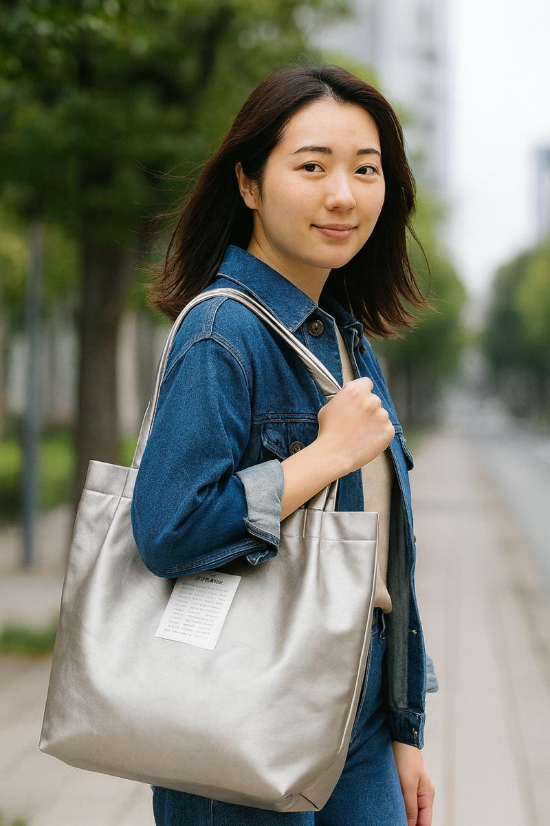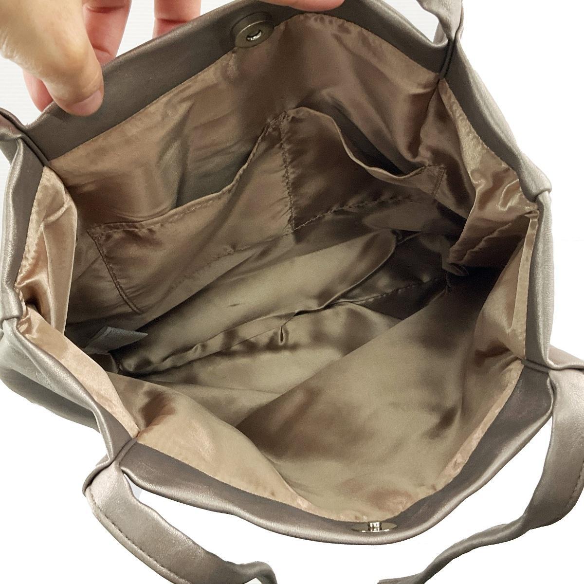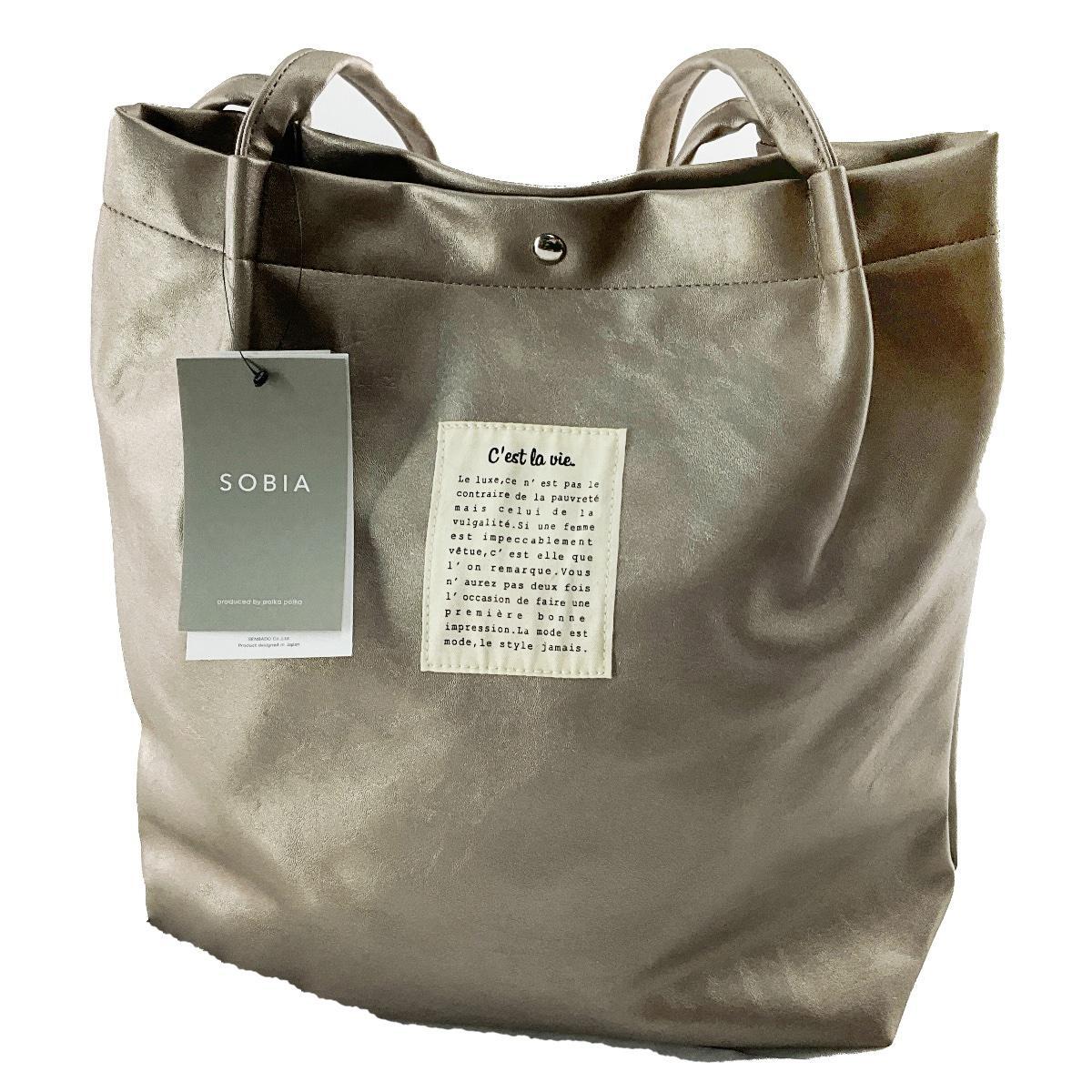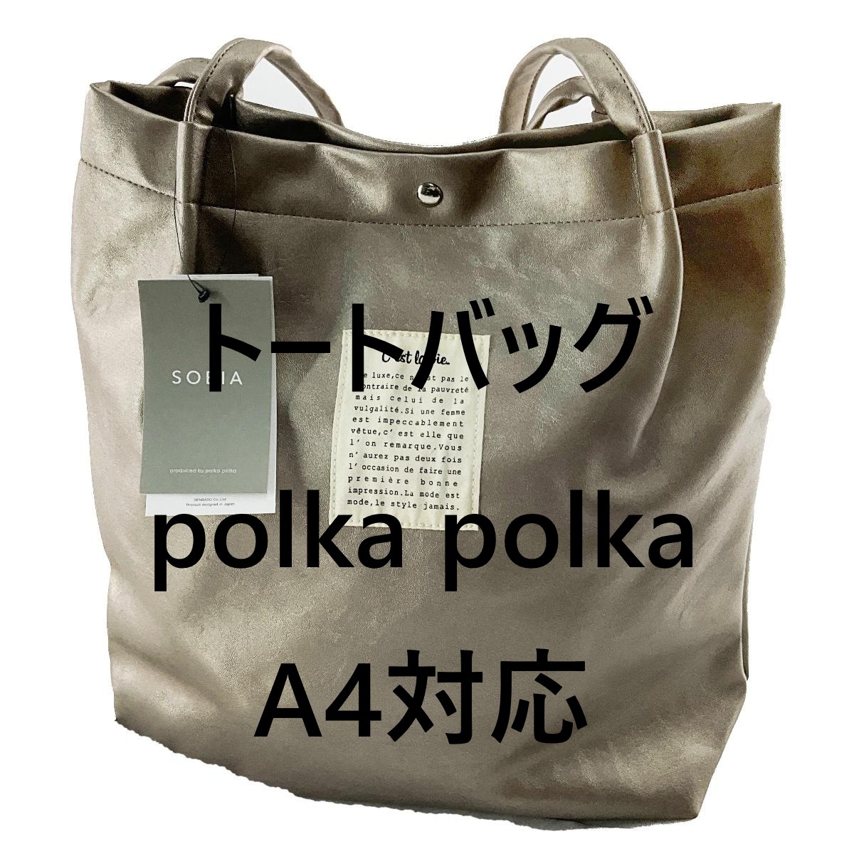 上品な光沢感が魅力のpolka polka ポルカポルカトートバッグ。