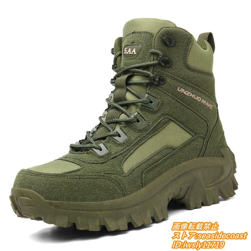 新品☆トレッキングシューズ メンズ 登山靴 アウトドア靴 ハイキング 撥水防滑 軽量 ブーツ ハイカット キャンプ 衝撃吸収 オリーブ 28.0cm