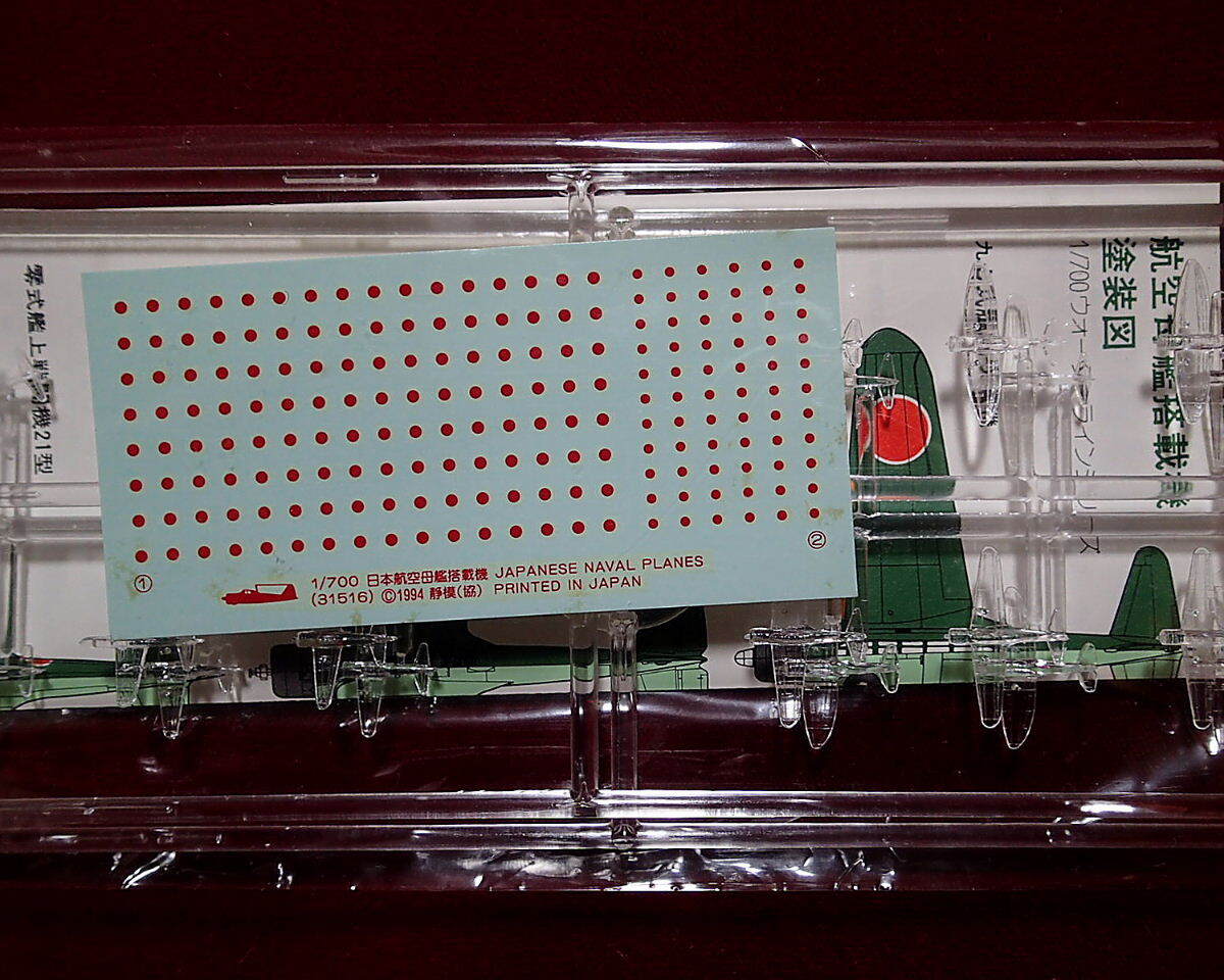 ●太平洋戦争前半に活躍した日本海軍航空母艦艦載機のクリア成型キットです。零式艦上戦闘機10機、97式艦上攻撃機8機、99式艦上爆撃機8機、彗星艦上爆撃機6機の合計32機がセットされています。大戦前半に活躍した日本海軍空母の甲板上の演出に重宝するキットです。