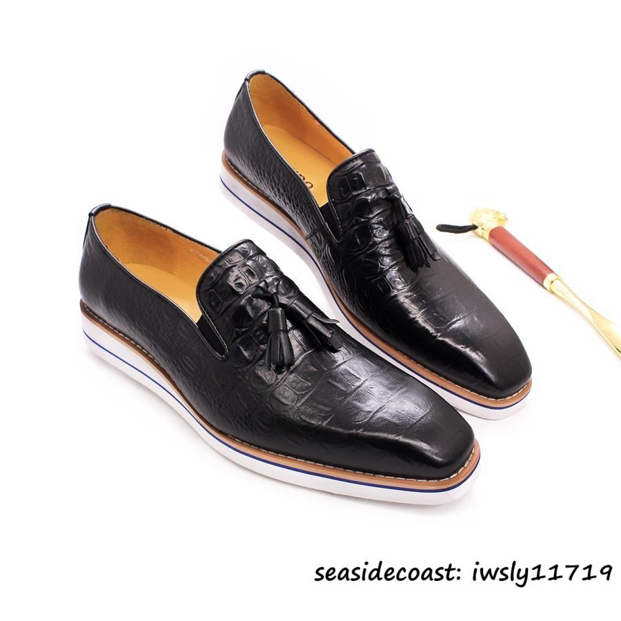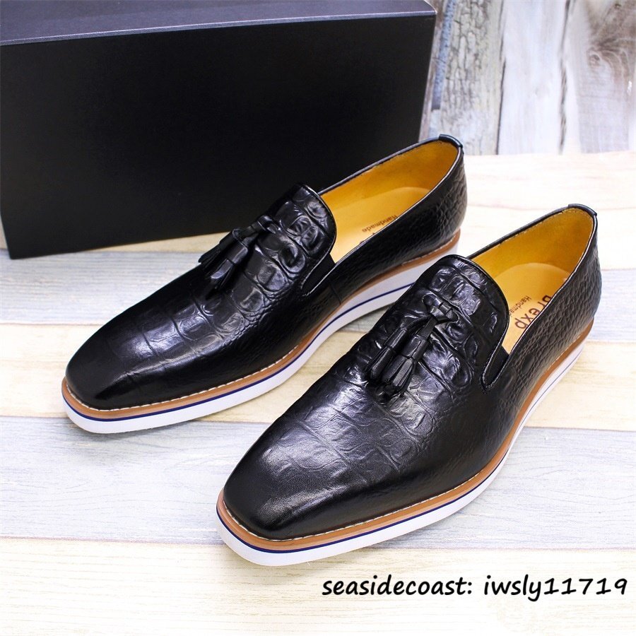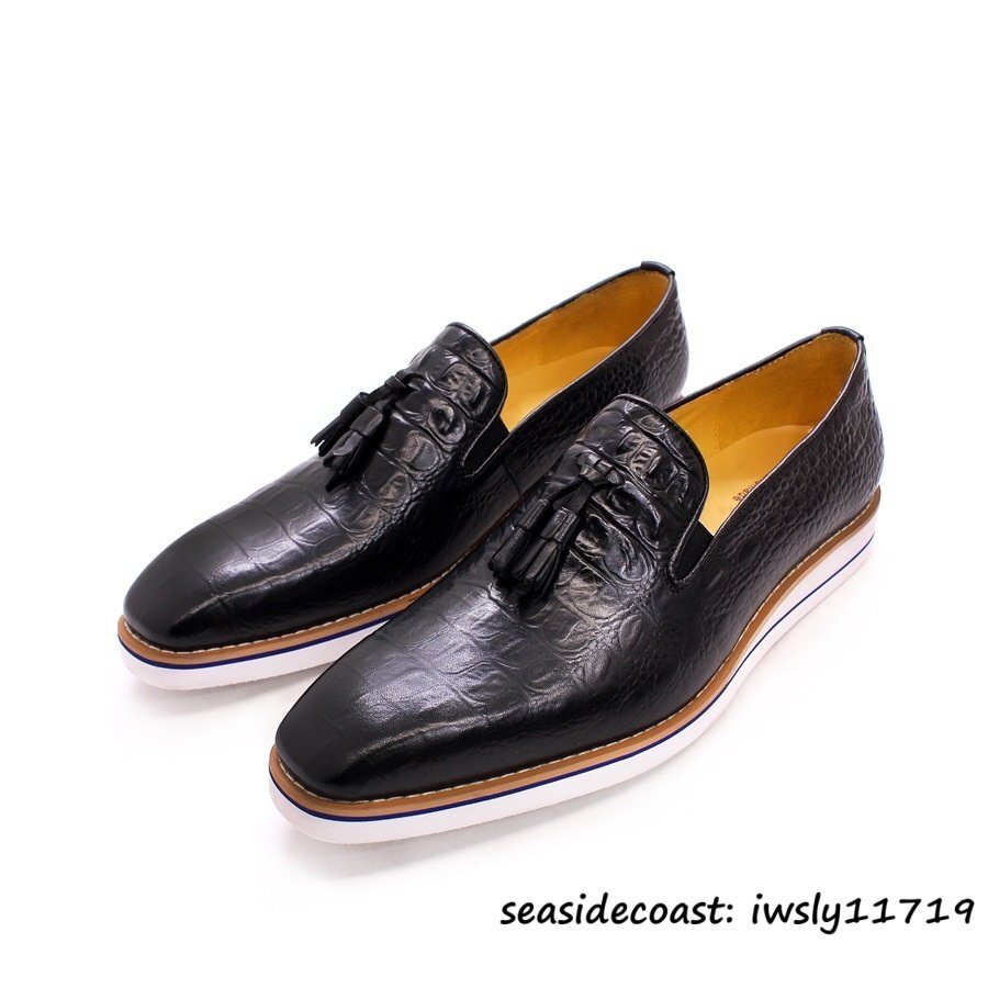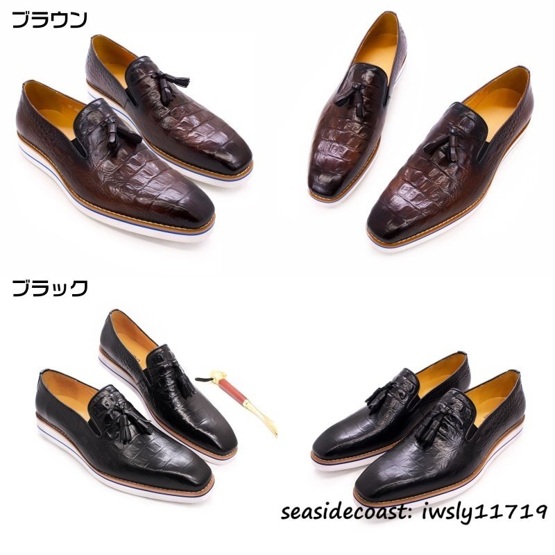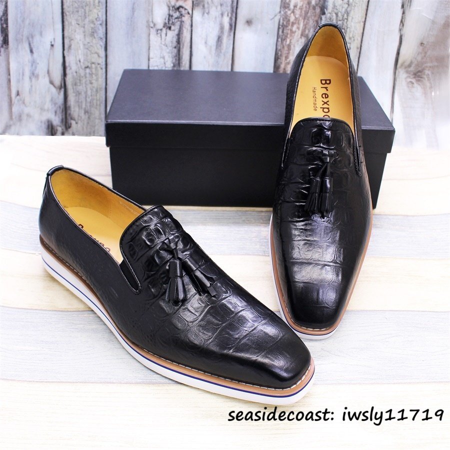 極希少&定価9万 新品 ビジネスシューズ 本革 職人手作り タッセルローファー スリッポン メンズ 牛革 レザーシューズ 革靴 ブラック 26.5cm