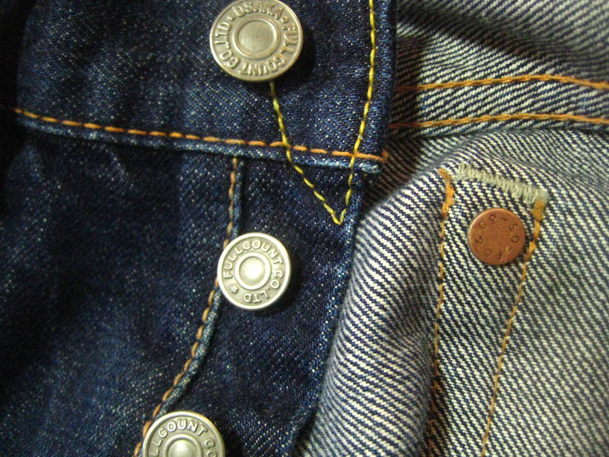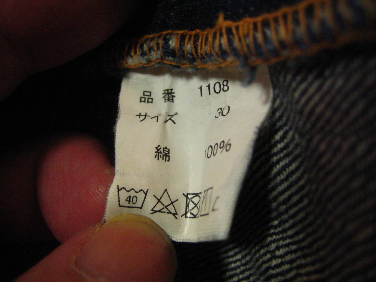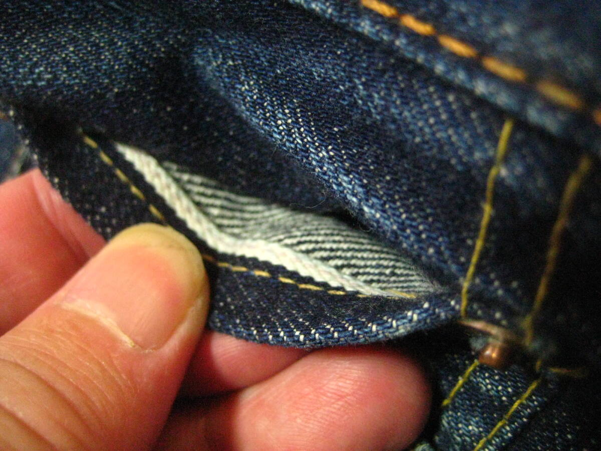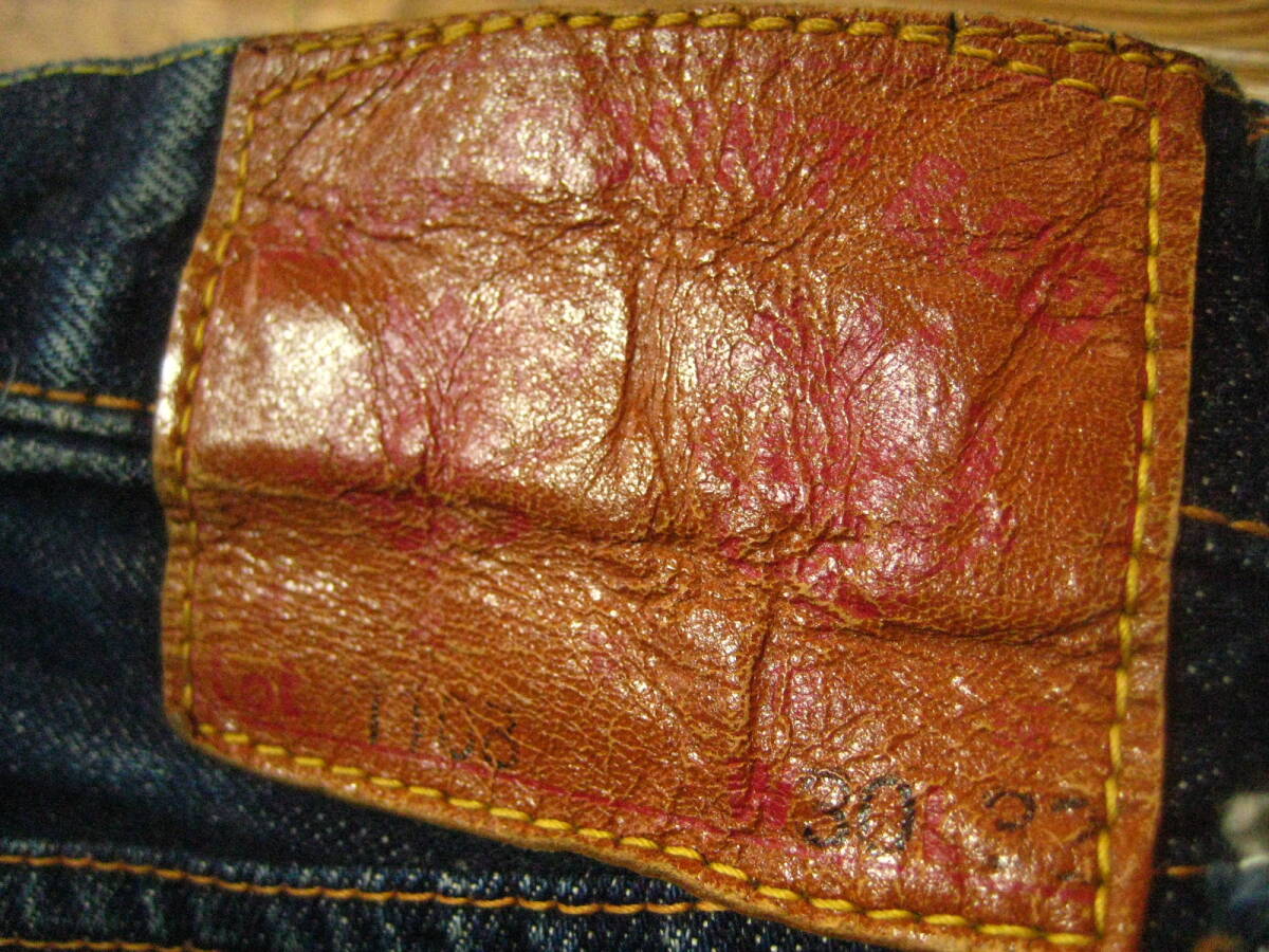 。○●サイズ表記●○。 W30L3? ボタンフライ 。○●平置きで実寸サイズ●○。 ウエスト約76㎝、レングス約69㎝、裾幅約18.5㎝ 太もも幅約29cm、股上前約28㎝、総丈約94㎝ ●程よい色感になります。 ●革パッチ・隠しリベット・ウエストバンドとバックポケットの縁はシングルステッチ・Vステッチ・各セルビッジ・裾はチェーンステッチなどなど。 ●濃紺極上の風格、しっかりとしたメリハリ感、ヒゲ・アタリ・タテ落ち感もこれから楽しめる1本になります。 ●実にカッコいいパンツになっております。激安で出品いたしますのでぜひこの機会にどうですか!!!