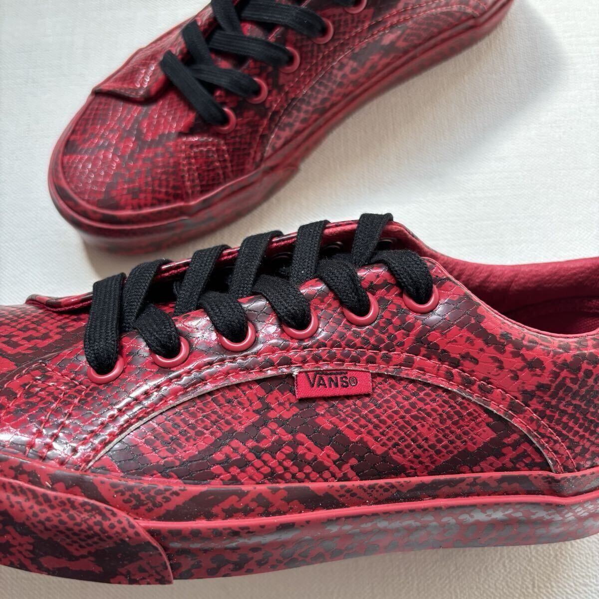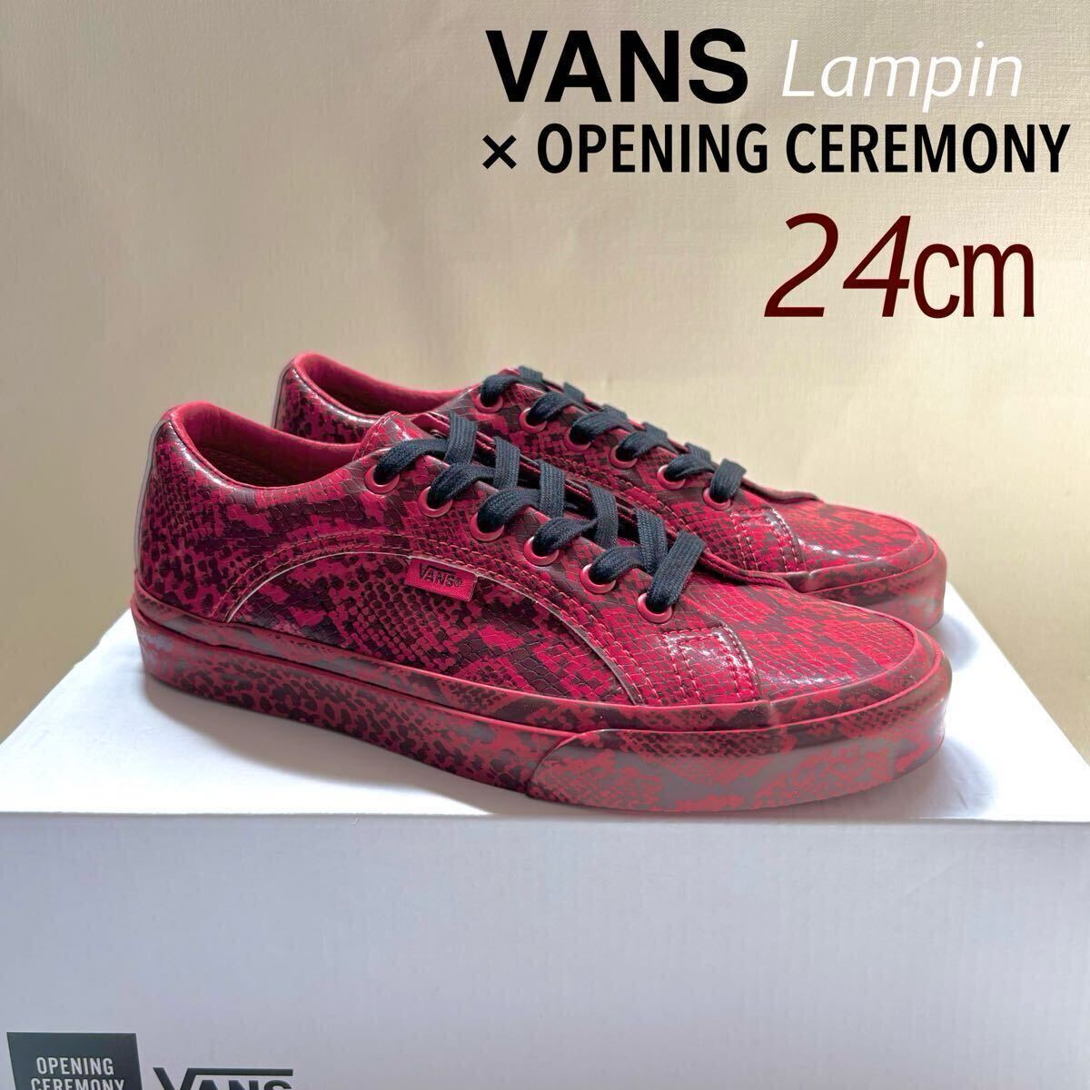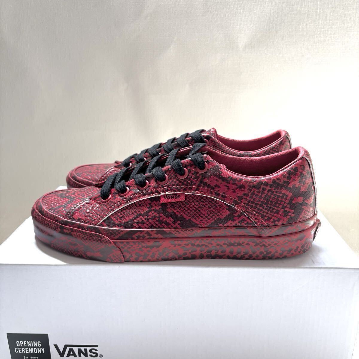 VANSとOPENING CEREMONYとのコラボモデル。90年代の名作スケートシューズとも言われるVANSの代表的なモデル LAMPINにレッドのスネーク柄を全面にあしらったインパクトのある一足。