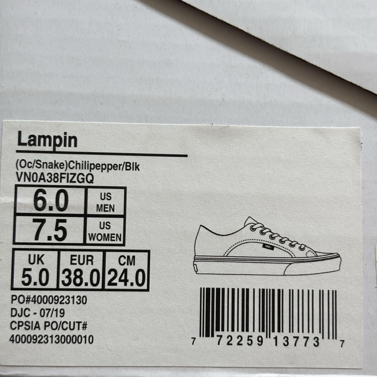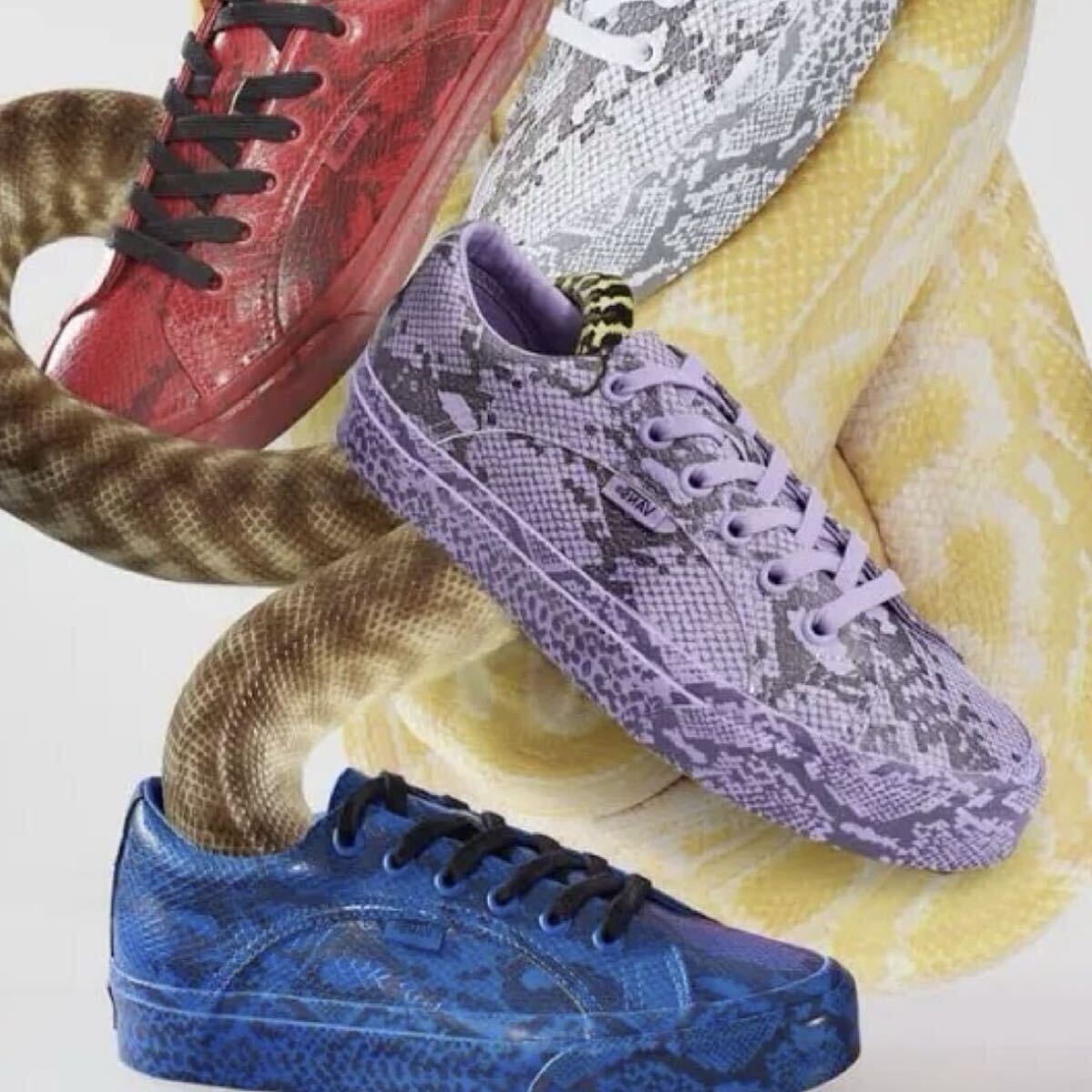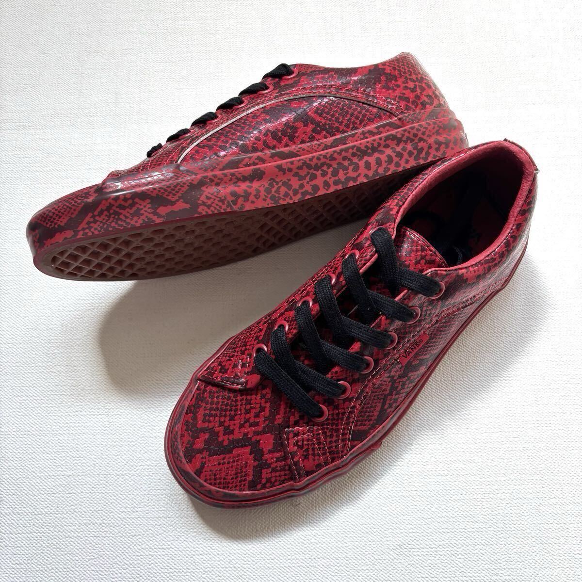 VANSとOPENING CEREMONYとのコラボモデル。90年代の名作スケートシューズとも言われるVANSの代表的なモデル LAMPINにレッドのスネーク柄を全面にあしらったインパクトのある一足。