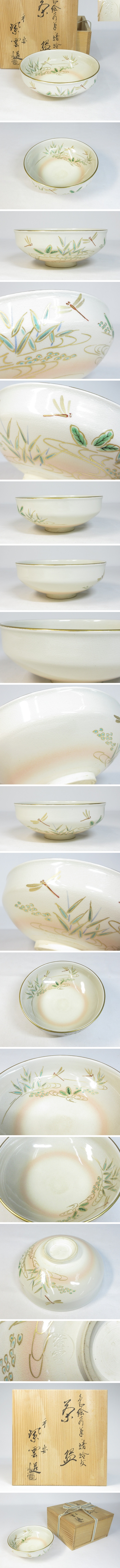 【B0561a】茶道具 京焼 橋本紫雲 色絵 水草ニ蜻蛉文 茶碗 共箱 即決 送料込み
