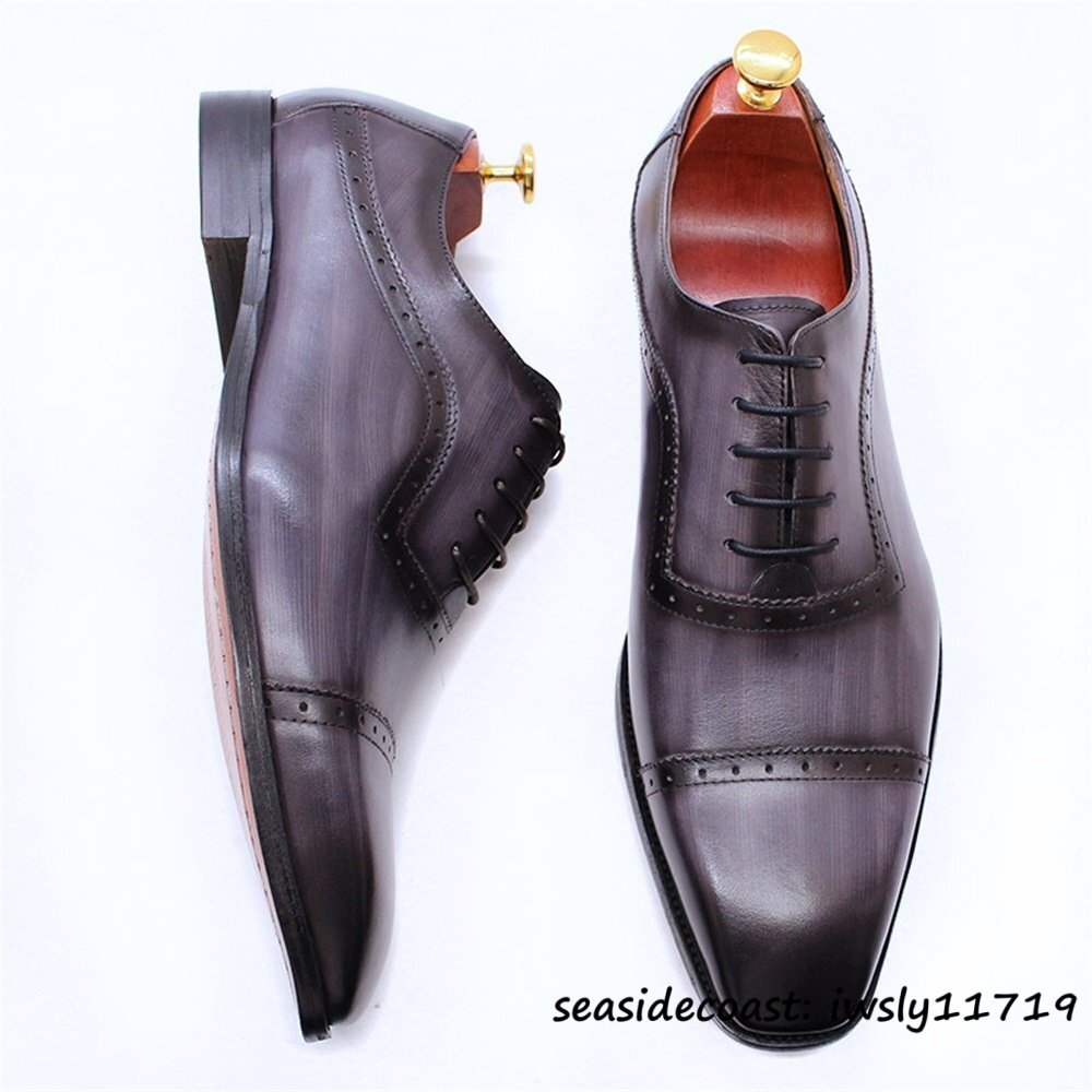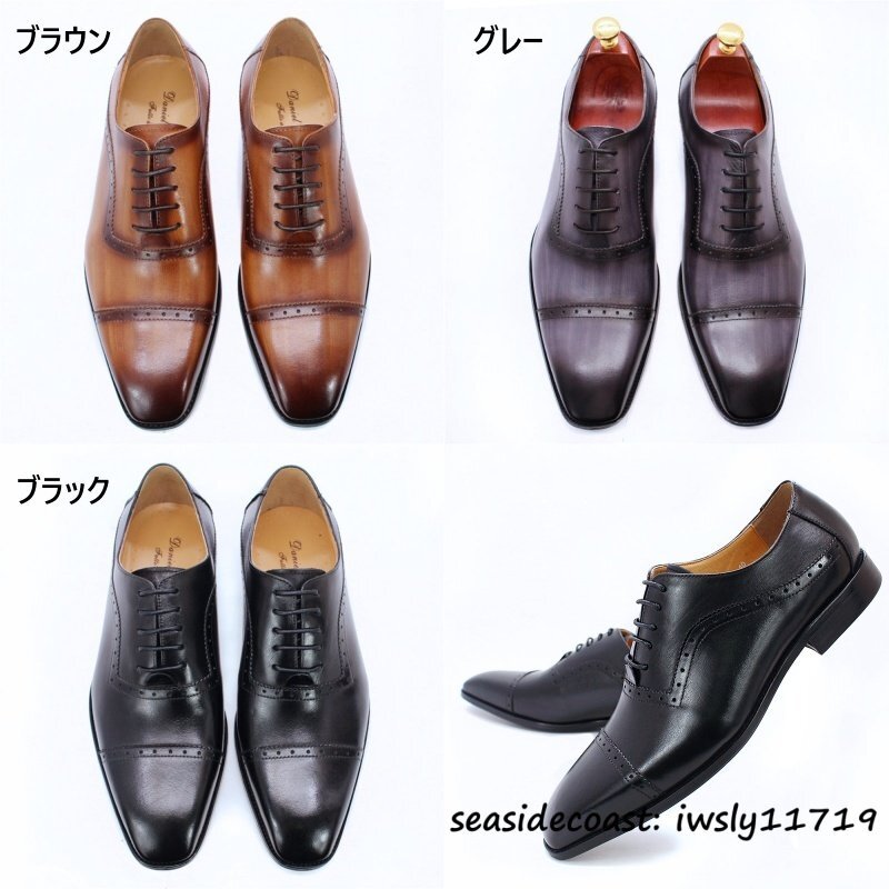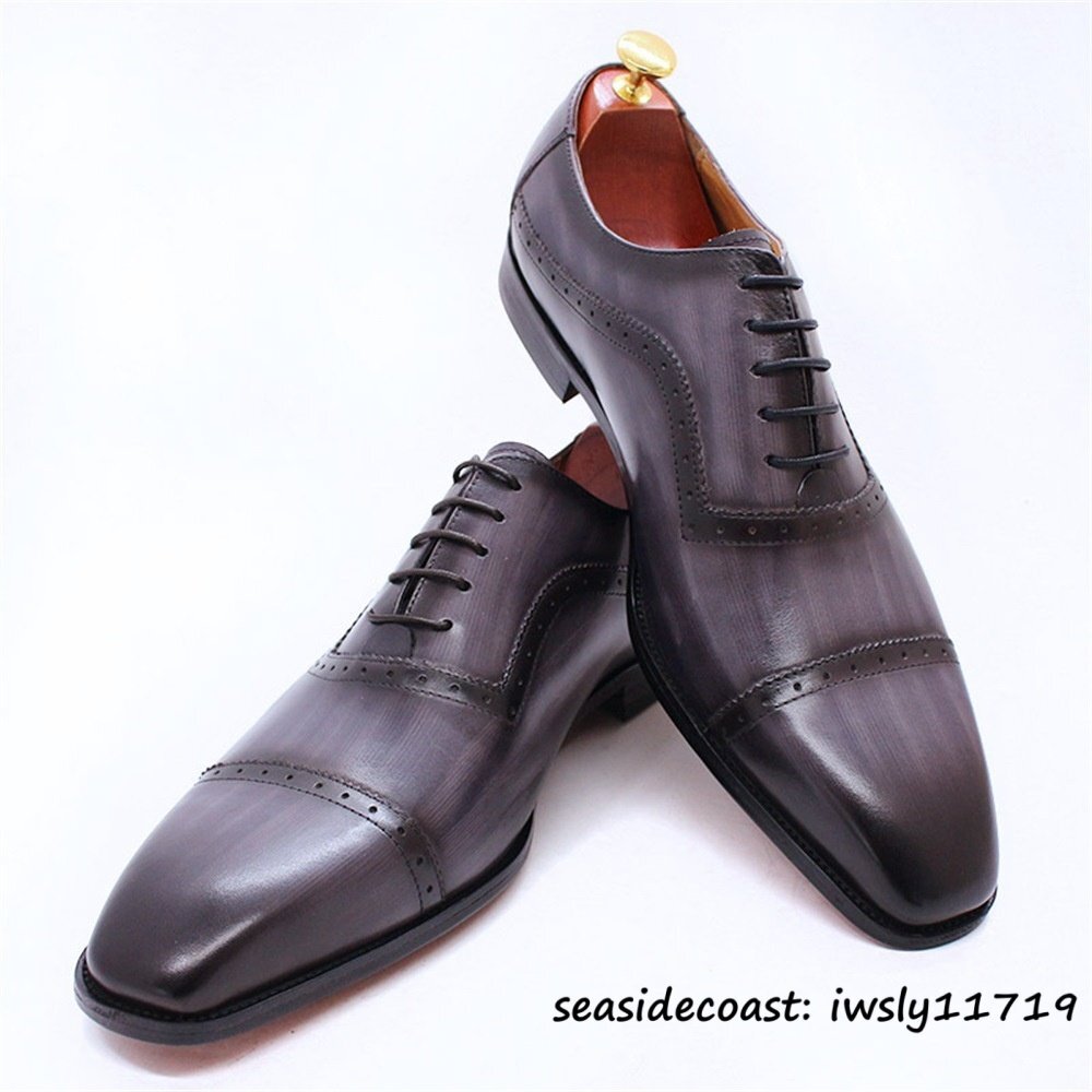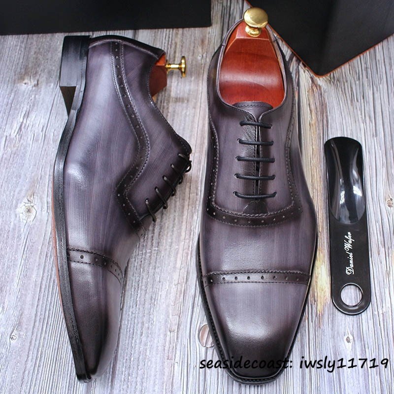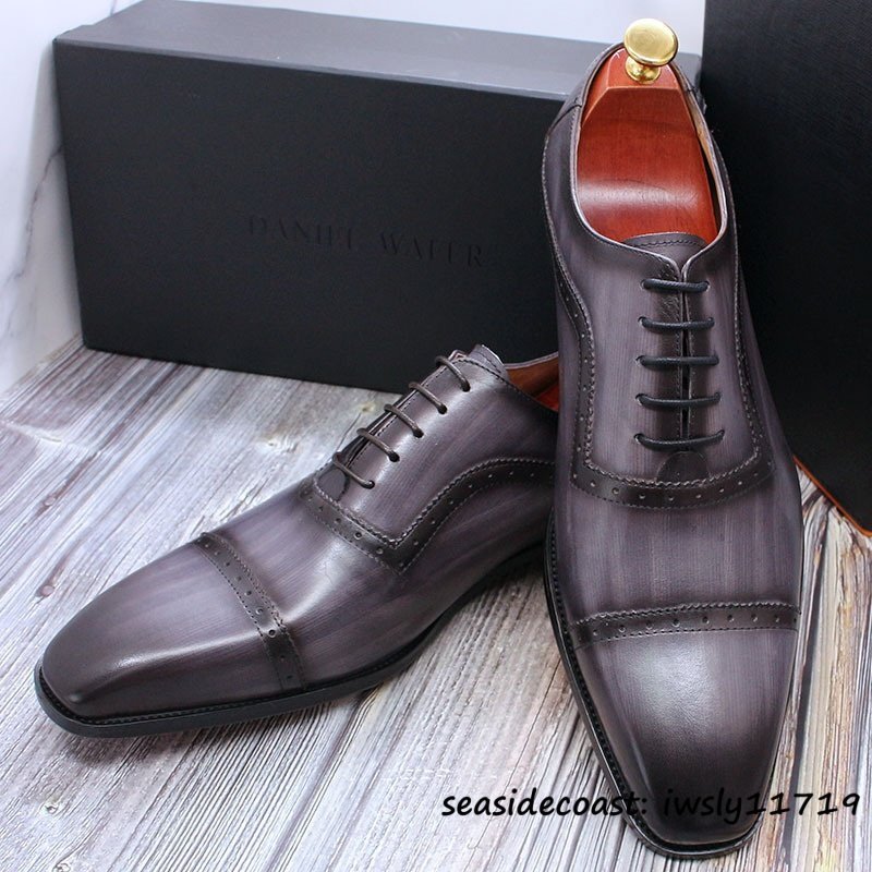 最高級■定価10万 メンズシューズ 牛革 ビジネスシューズ 本革 レザーシューズ ハンドメイド 職人手作り 紳士靴 革靴 新品 グレー 26.0cm