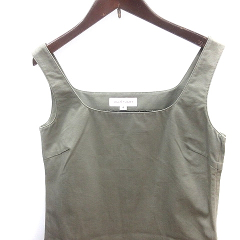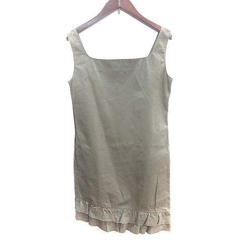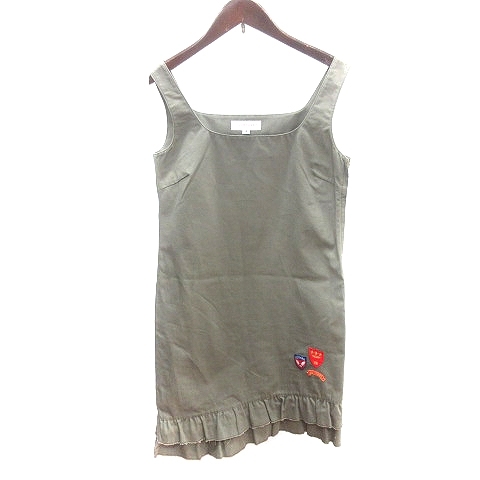 ジルスチュアート JILL STUART ワンピース ジャンパースカート ひざ丈 アシンメトリー ワッペン 4 M カーキ 緑 グリーン レディース