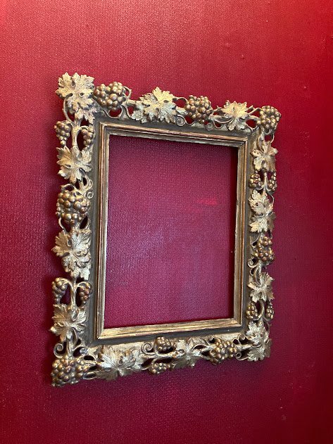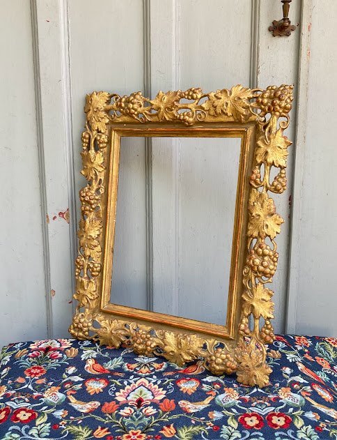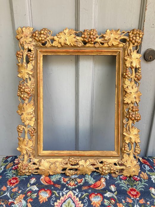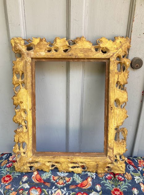 鈍いゴールドで彩られた美しいアンティークフレームが入荷しました。現地セラーによると、イギリスから入荷しましたが、額を取り囲むデザインの豪華さから18世紀後期頃フランスやイタリアで製造されイギリスに渡ったものではないか?とのことでした。ベースは木彫りでその上に石膏を使用し細やかなデザインを創り出しています。パーツが外れてしまった箇所や細かなヒビを含みますが、全体的なイメージは崩れてはおりません。裏面には何度も絵画を入れ替えた際に開いた小さな穴があります。画像を拡大してご覧ください。絵画やお花をはめ込んで壁面の装飾にしても素敵ですし、このままでも十分華やかな空間を創り出してくれそうです。ご自宅や店舗、撮影スタジオなど壁を彩るフレームをお探しの方におすすめ。磨いてしまうとこの風合いを損ないますので、細かいブラシでホコリのみ払っております。ピカピカの新品をお求めの方はご遠慮ください。福岡市南区の店舗にてお渡しもできますのでお気軽にどうぞ!
