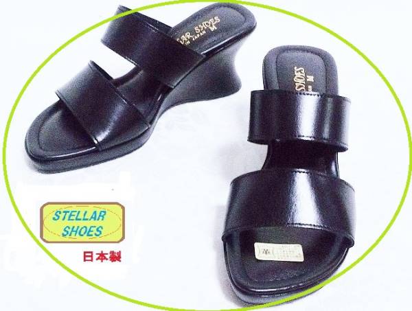 《新品》【日本製・STELLAR】本革ミュール★ウェッジ★601/ブラック/M(約23.0㎝)@2,500円