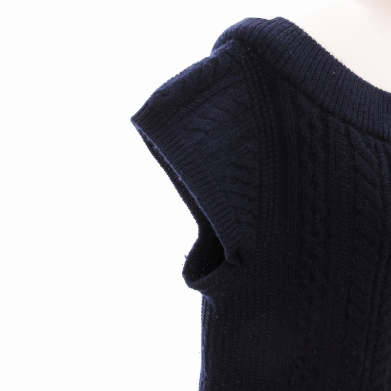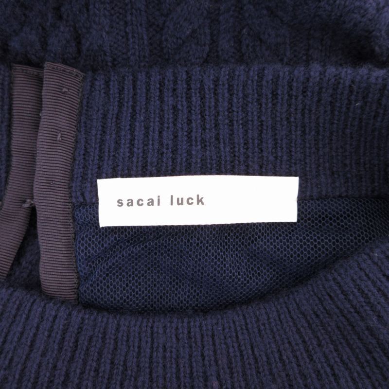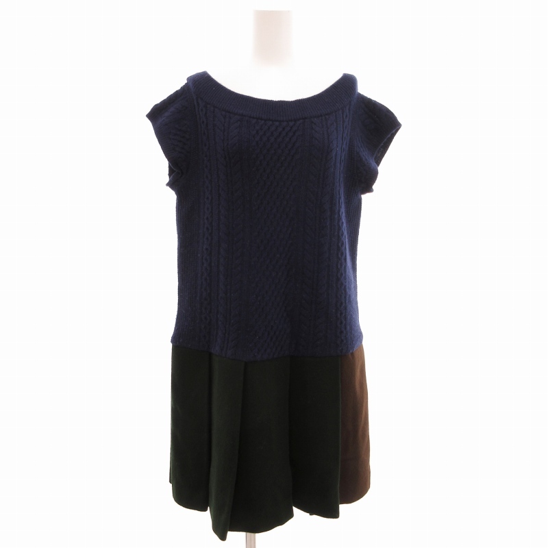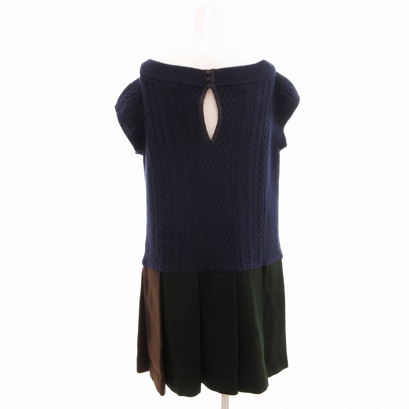 サカイラック sacai luck 13AW ケーブルニットワンピース 切替 フレンチスリーブ プリーツ ひざ丈 3 XL 青 ブルー 緑 グリーン 茶
