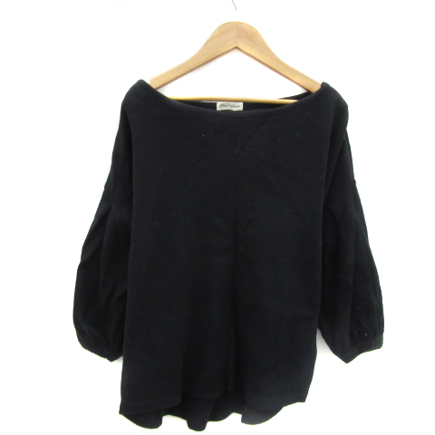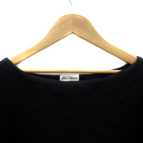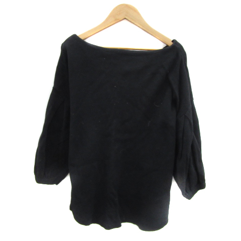 ナノユニバース nano universe カットソー 八分袖 ボートネック 無地 ワッフル F 黒 ブラック /YS14 レディース