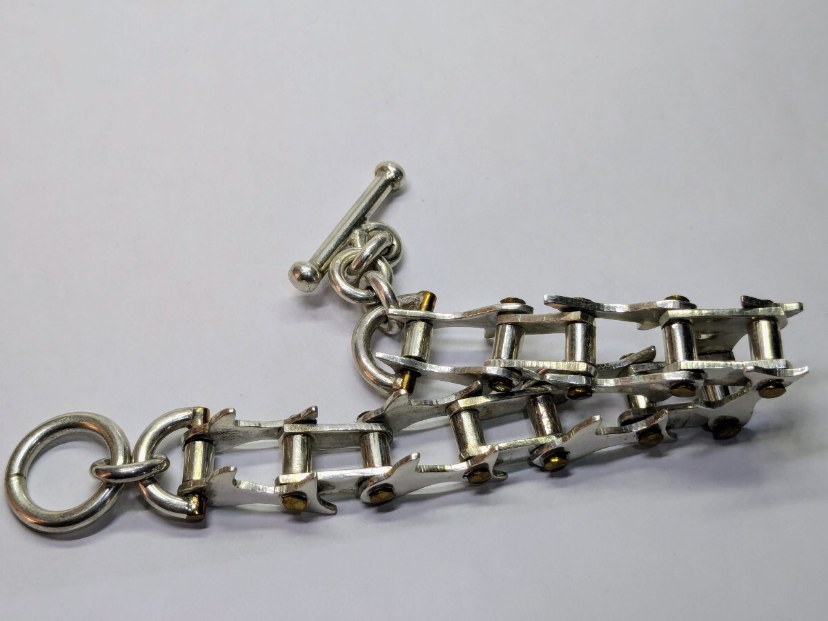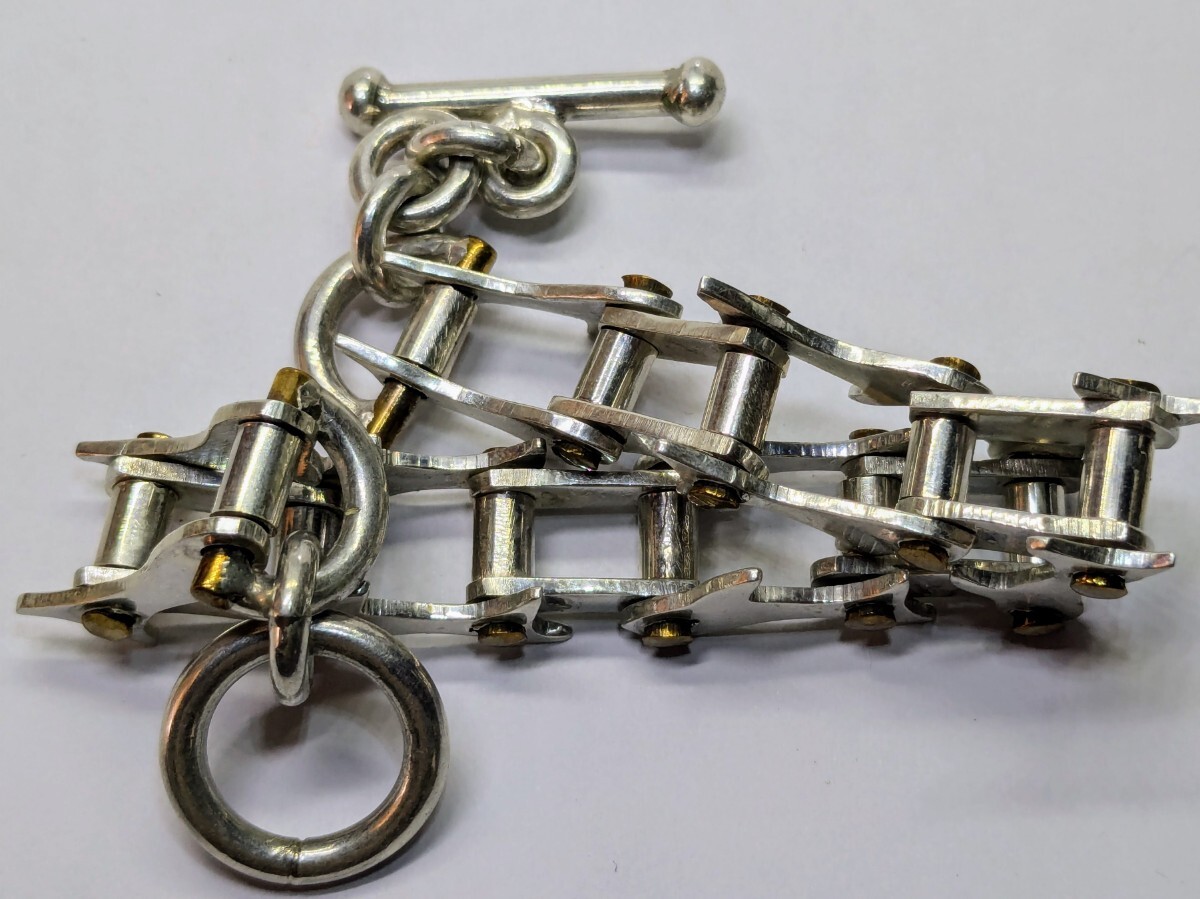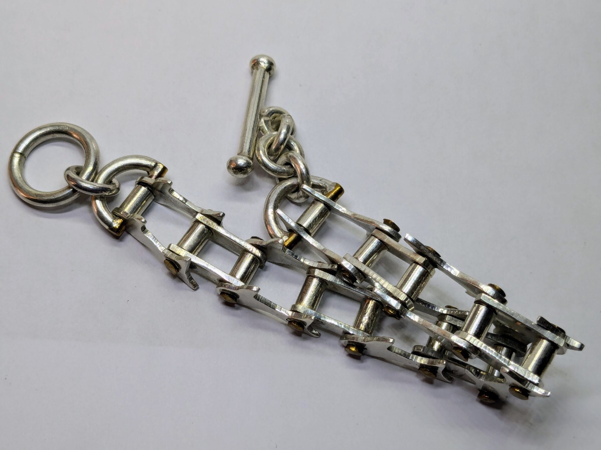 新品 シルバー925 バイク バイカーラージモーターサイク ルチェーンブレスレットLarge Motor Cycle Chain Bracelet約53g 幅18mm 長さ200mm ハーレー