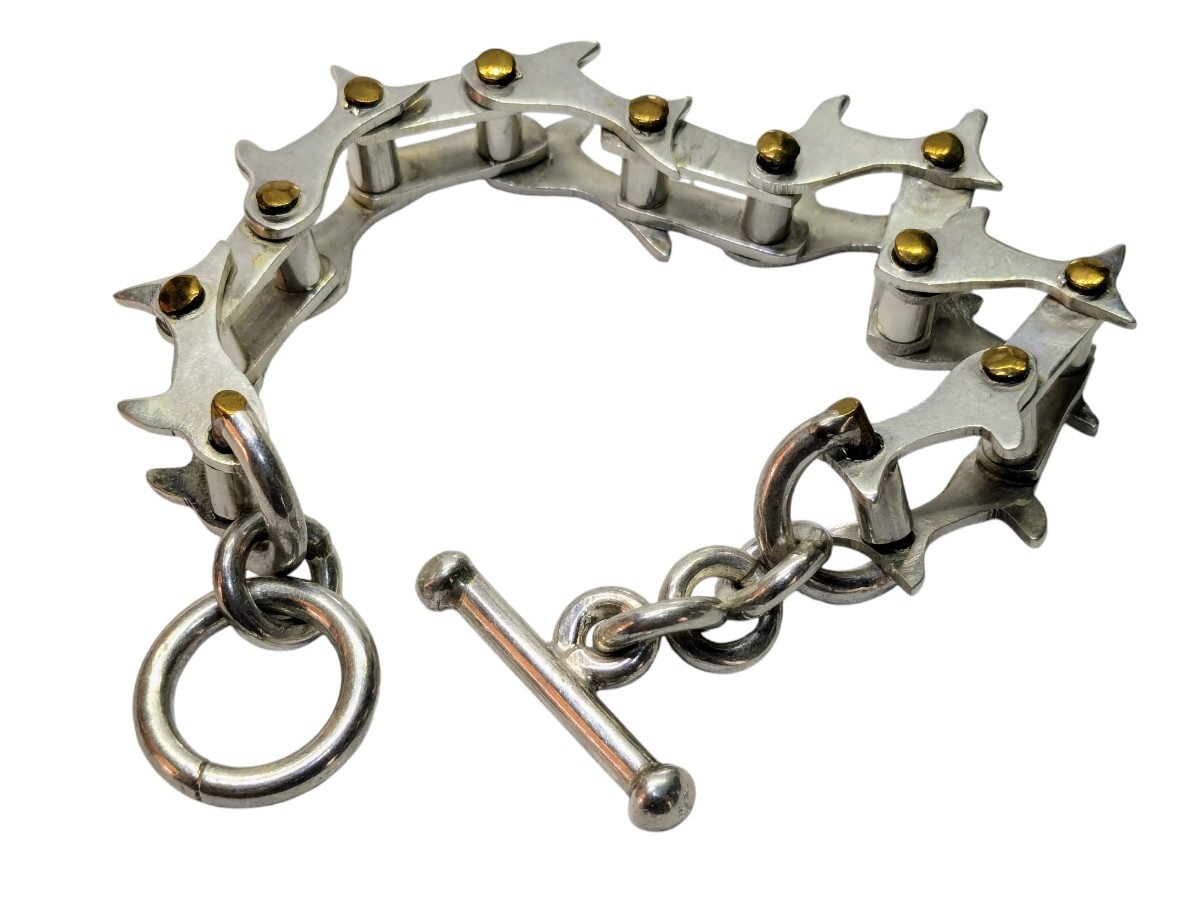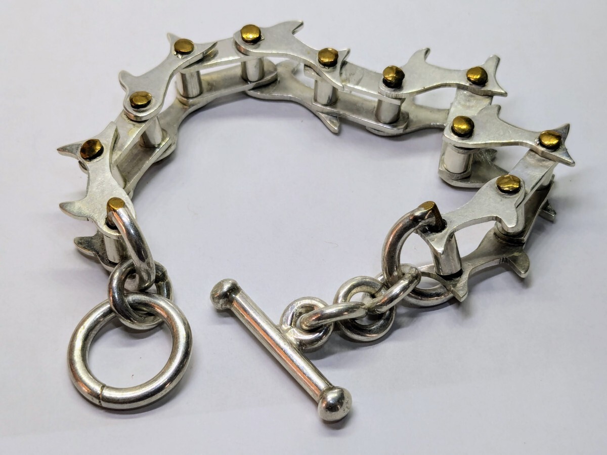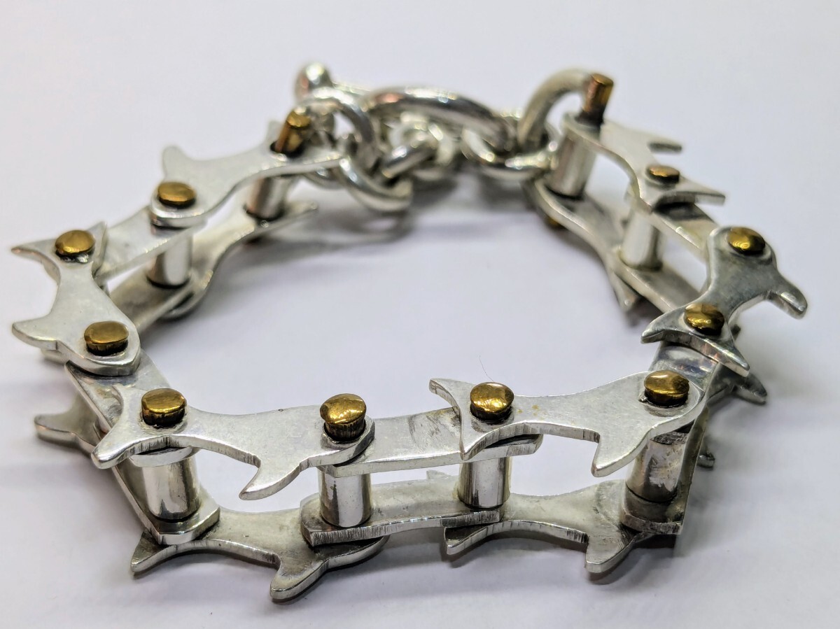 新品 シルバー925 バイク バイカーラージモーターサイク ルチェーンブレスレットLarge Motor Cycle Chain Bracelet約53g 幅18mm 長さ200mm ハーレー