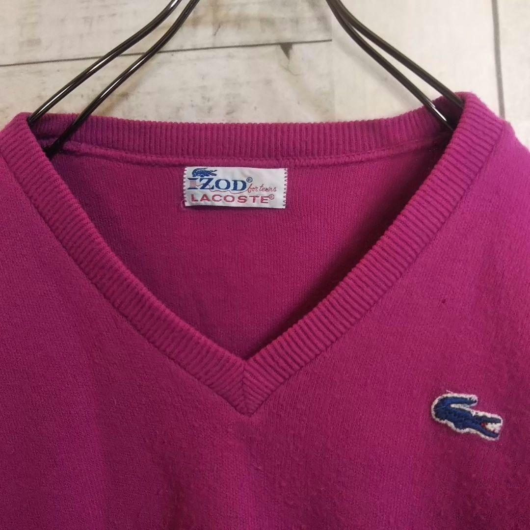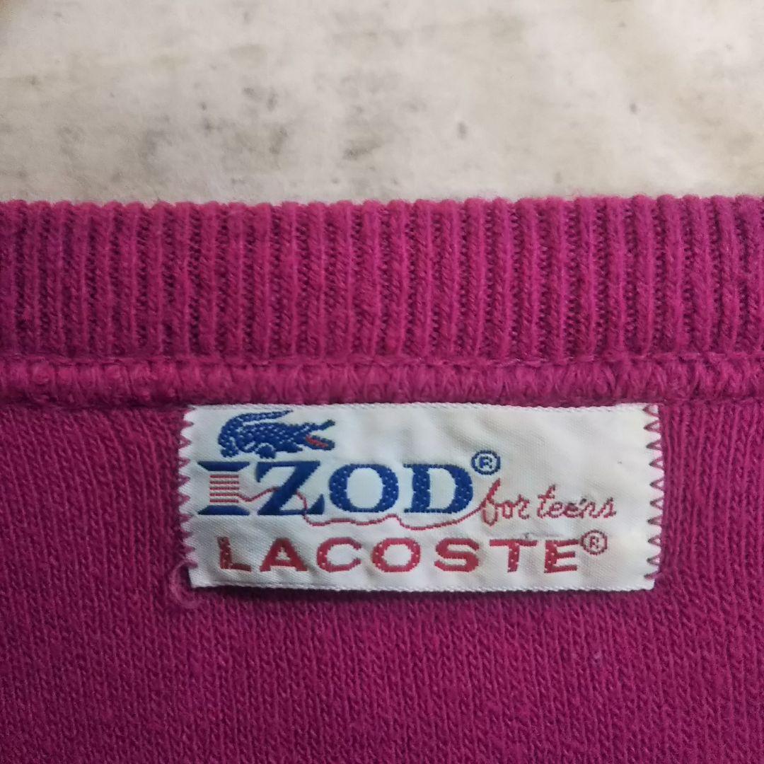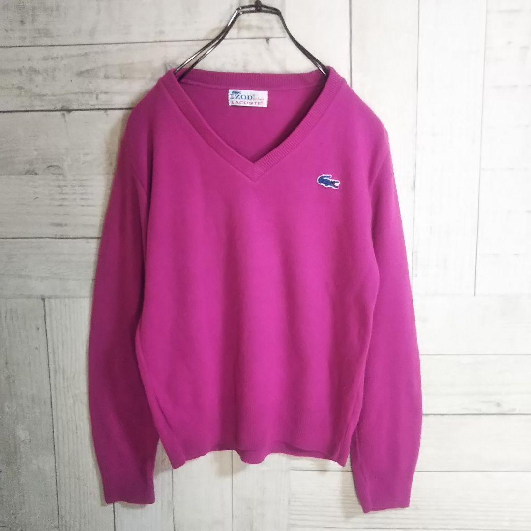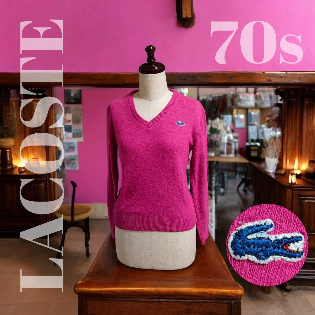 あいみょんさんも着用して話題になったブランドアメリカ製『IZOD LACOSTE』のニットセーター。こちらはとても希少な糸巻きロゴの70sヴィンテージです。可愛いピンクのボディにブルーがかった独特のカラーのワニ刺繍ロゴが魅力の1枚。スカートやデニム等に合わせていただくだけで色映えするとても愛らしいアイテムです◎