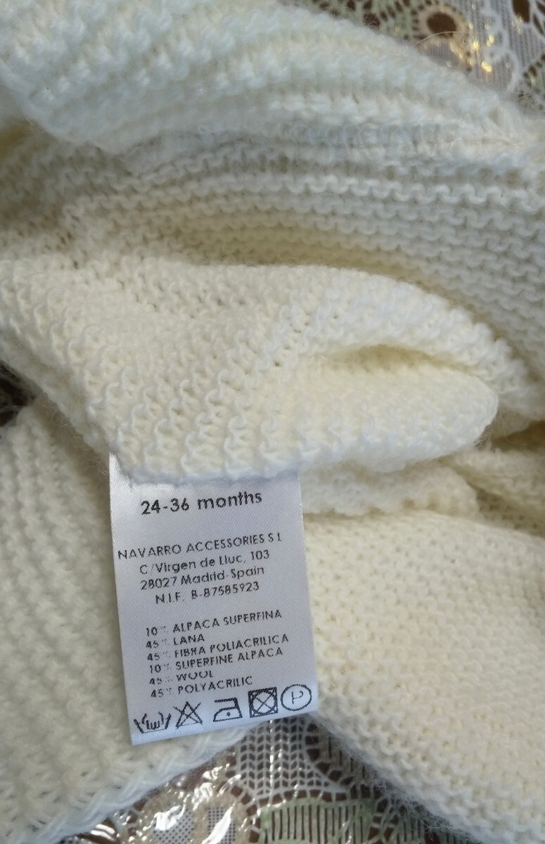 スペイン製のリボン付き帽子です。柔らかいニット素材で作られており、赤ちゃんや子供に優しい肌触りです。リボン付きのデザインが可愛らしさを引き立てています。