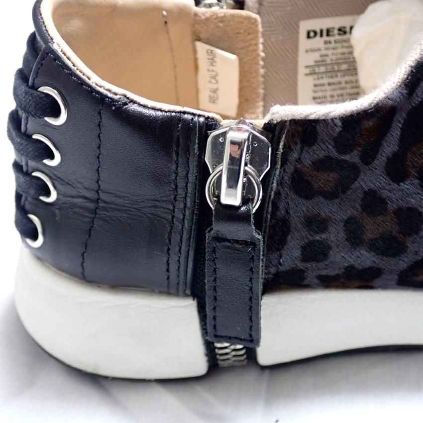 DIESEL/サイドジップと編み上げバックのレオパード柄スニーカーです。
