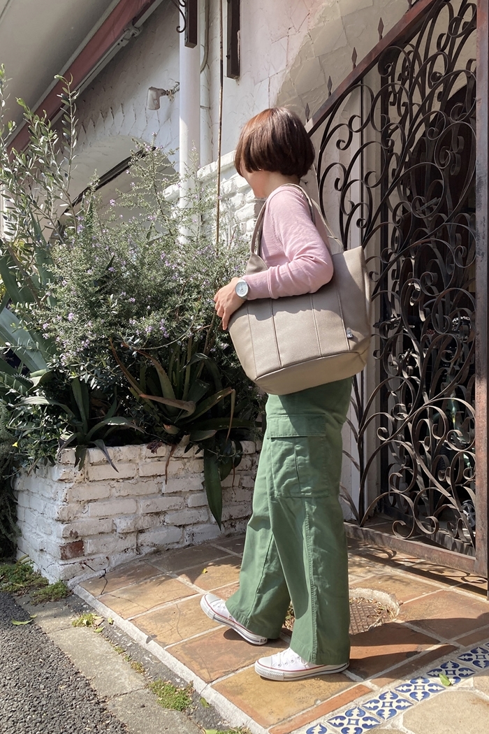 | 商品説明 | ・・光沢感のあるフェイクレザー生地で高級感のあるつくり。 ・大人っぽさのある魅力的なトートです。 ・汚れに強いポリエステル素材の裏地。 ・気持ちが穏やかになるような同系色のカラー配色にしました。 ・軽量だけどしっかりしたハリ感。 ・クッション性のあるウレタンボンディングを施しました。 ・体に寄り添うやわらかさがありながら、自立するシルエット。 ・荷物が少ない時にも型崩れしにくくなっています。 ・ハンドル長めで肩に掛けやすい。 ・腕掛けでも肩かけでも、シーンに合わせて選べます。 ・A4サイズのファイルが収納できるサイズ。 ・ボトル、コスメポーチ、ノートなどもらくらく収納。 ・13インチのPCも入り、ビジネスバッグとして重宝します。 ・スマホやハンカチがちょうど入る内ポケットも便利。 ・サイドのファスナー付きルーポケットには、パスケースや除菌スプレーなどの小物の収納に。 ・お出かけを心地よく。 ・まいにち使うほどに、“グッドデザイン”を実感できます。 |