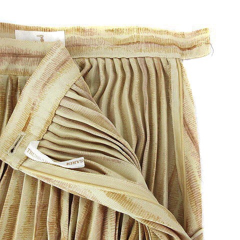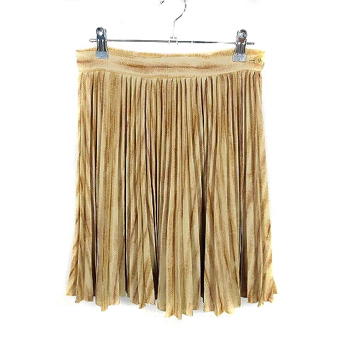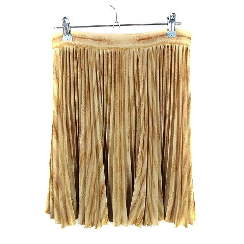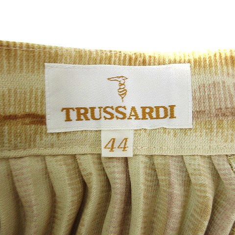 トラサルディ TRUSSARDI スカート ひざ丈 プリーツ サイドファスナー 総柄 薄手 44 ベージュ ボトムス /T2 レディース