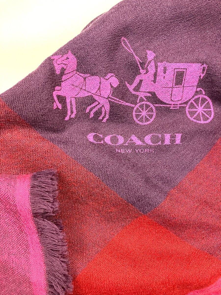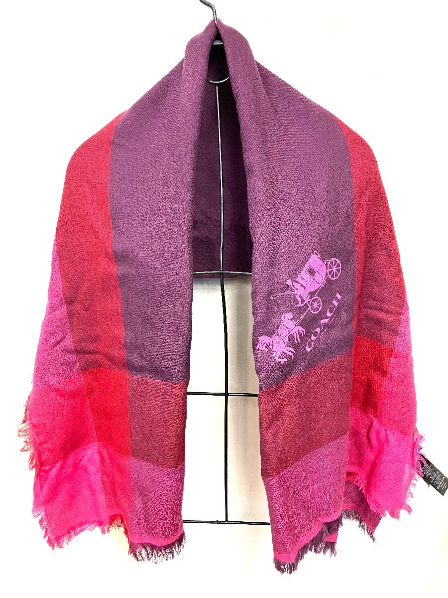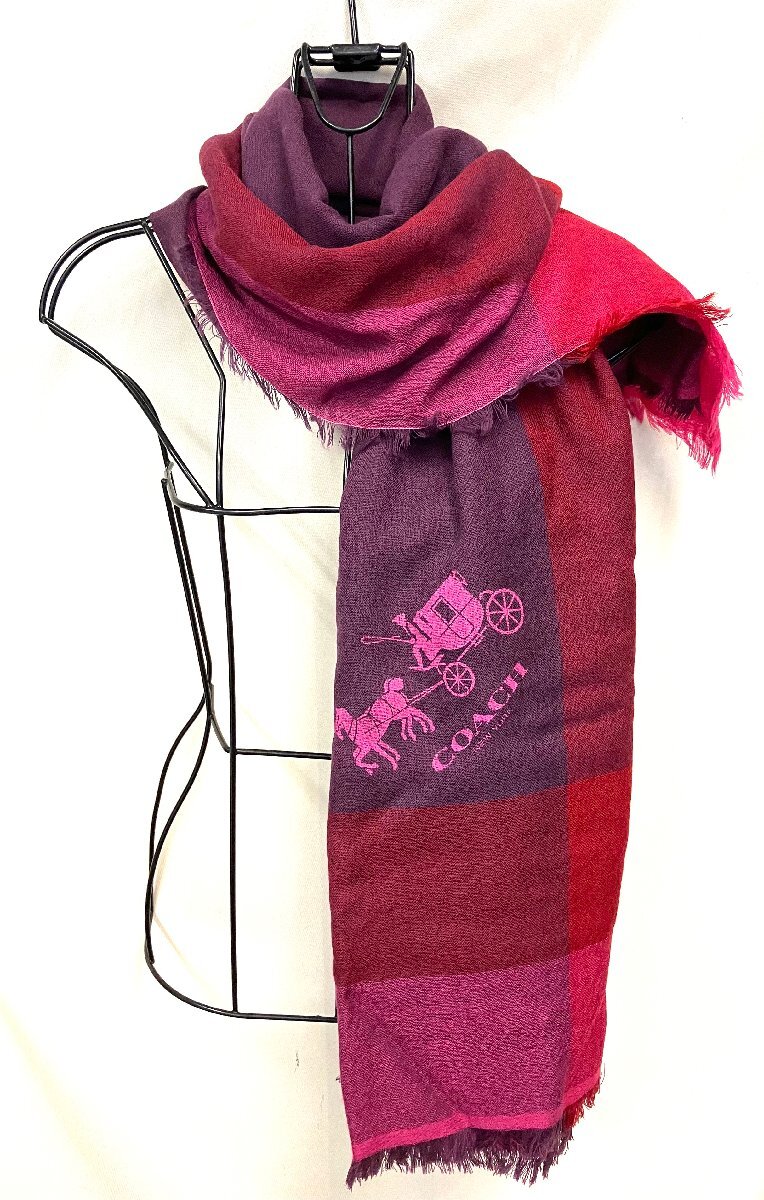 品名:qob.Z5O15 コーチ マフラー 馬車柄 パープル系 箱付き カラー:パープル系 サイズ:67㎝×139㎝ 素材:ウール 100% 神経質の方はご遠慮下さいませ。 |