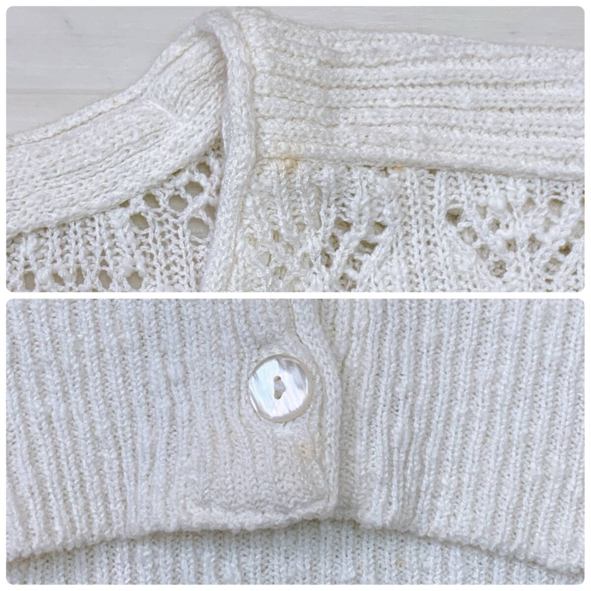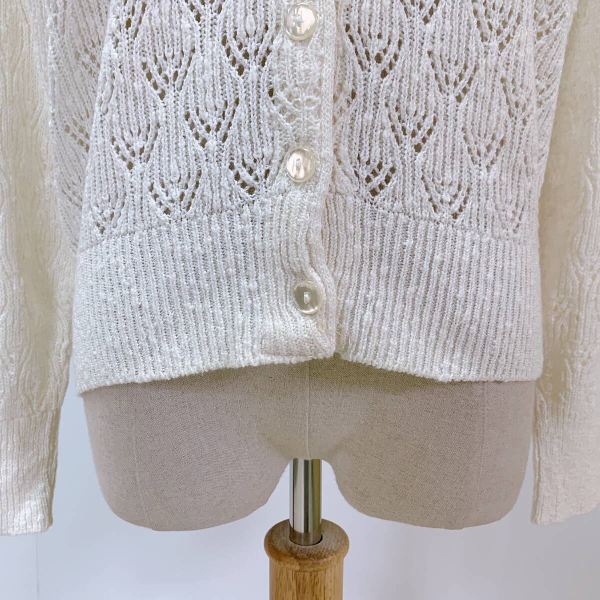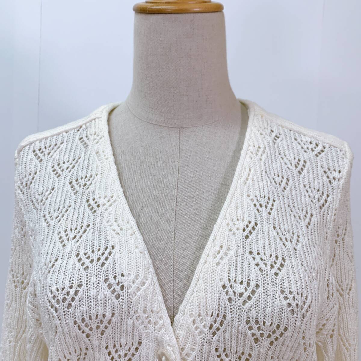 YH1711 KARINCA レディース 長袖 カーディガン 日本製 シースルー 袖裾リブ オフホワイト Lサイズ レース かわいい キュート 万能 USED