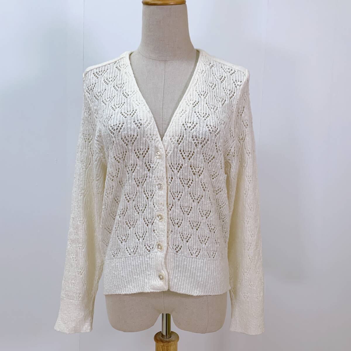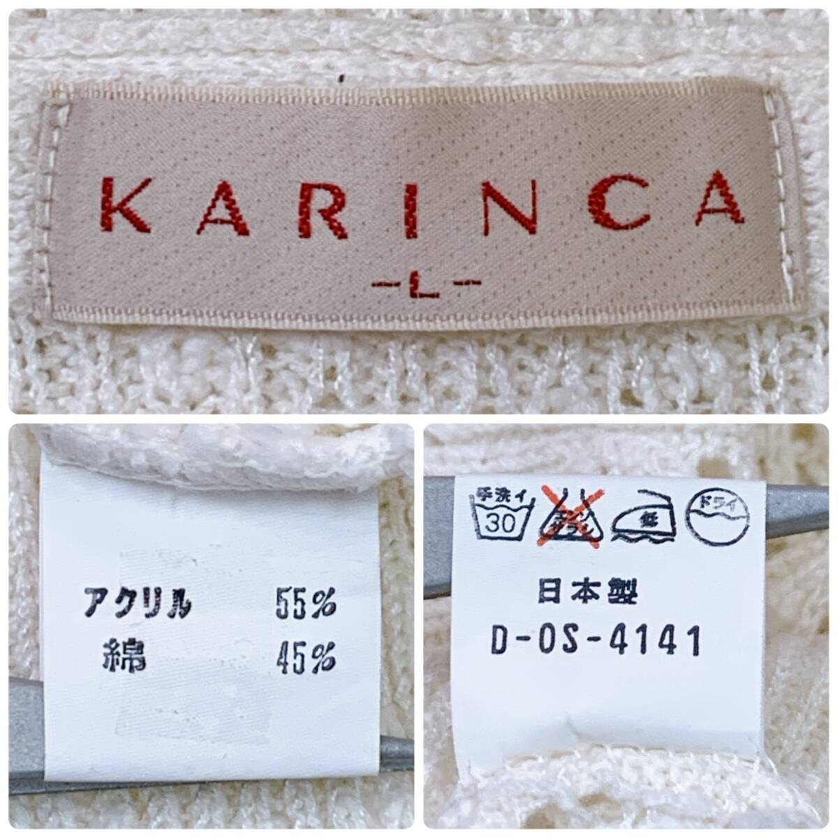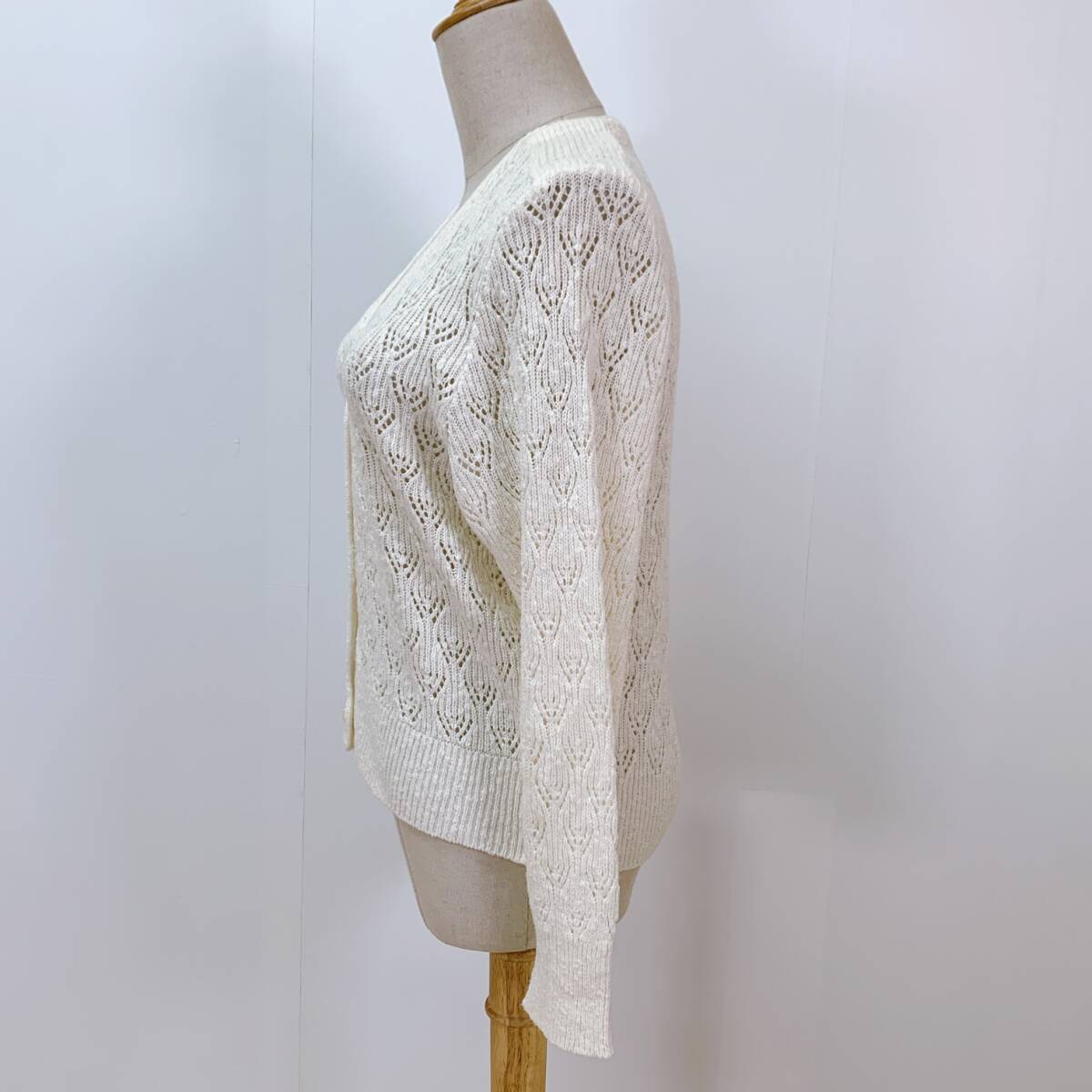 YH1711 KARINCA レディース 長袖 カーディガン 日本製 シースルー 袖裾リブ オフホワイト Lサイズ レース かわいい キュート 万能 USED